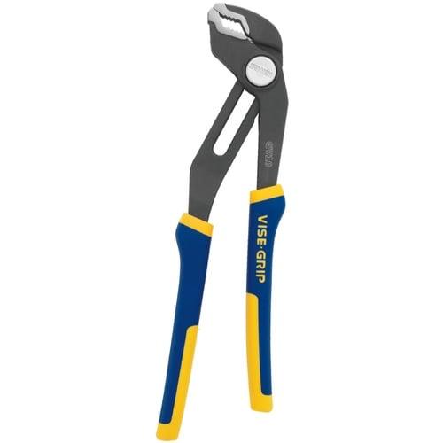 Press-n-Slide button adjusts lower jaw 2X faster than traditional groove joint pliers Multi-groove ratcheting system has 2X more positions than other groove joint pliers for a precise grip on almost any surface Anti-pinch, non-slip ProTouch grips increase control and reduce hand fatigue Durable constructed using a Metal Injection Molding (MIM) process for exceptional strength and performance Backed by the IRWIN VISE-GRIP Lifetime Guarantee