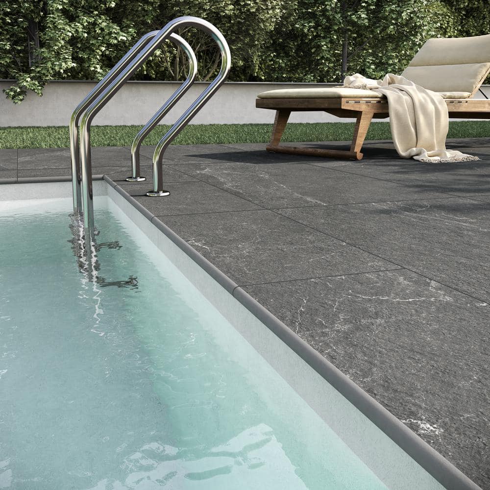 The Graphite Gray Matte Porcelain Pool Coping Tile is a stunning fusion of functionality and beauty, perfect for transforming your outdoor sanctuary. Its matte finish and natural stone dynamism capture the eye, while offering a robust platform underfoot. Use it to frame your pool with elegance or extend its charm to a crafted pathway. A luxurious must-have for those seeking harmony between stylish design and outdoor longevity.