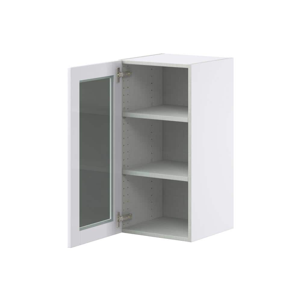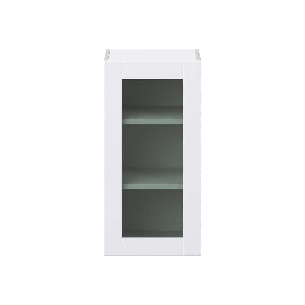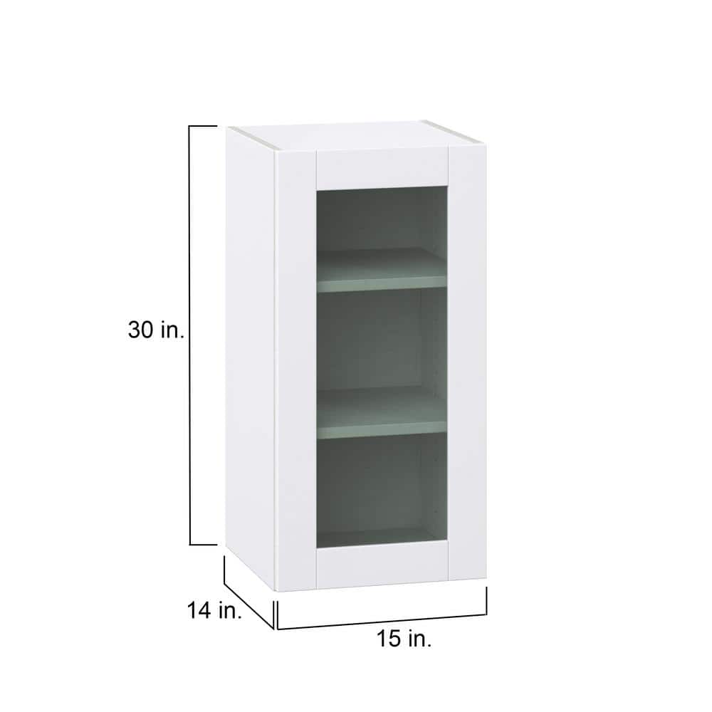 J COLLECTION Bright White Shaker Assembled Wall Kitchen Cabinet with Glass Door (15 in. W x 30 in. H x 14 in. D)