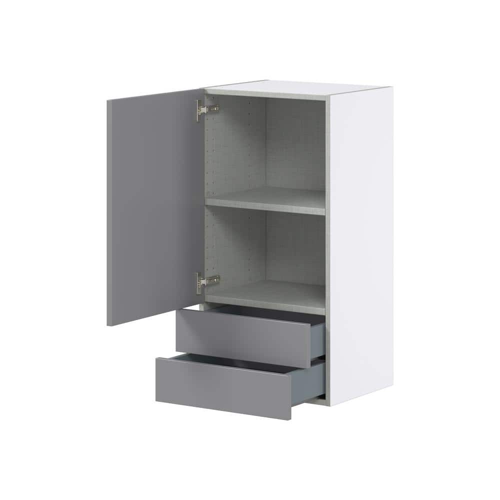J COLLECTION Bristol Painted Slate Gray Shaker Assembled Wall Kitchen Cabinet with 2 Drawers (18 in. W x 35 in. H x 14 in. D)