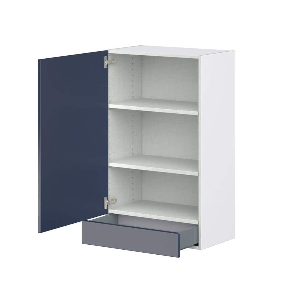 J COLLECTION Devon Painted 24 in. W x 40 in. H x 14 in. D Blue Recessed Assembled Wall Kitchen Cabinet with 1-Draw