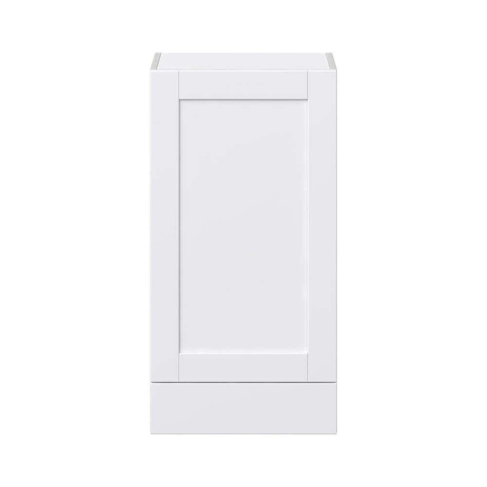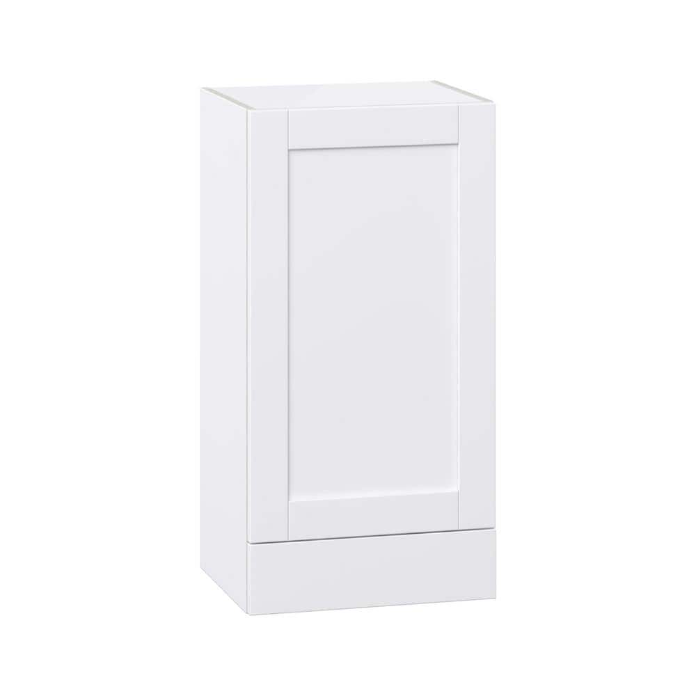 Elevate your kitchen's functionality and style with the J COLLECTION Mancos Bright White Shaker Wall Kitchen Cabinet. This pre-assembled cabinet boasts a sleek frameless design for full accessibility, durable laminate finish, and an integrated soft-close drawer, delivering both form and function for a dream kitchen setup.