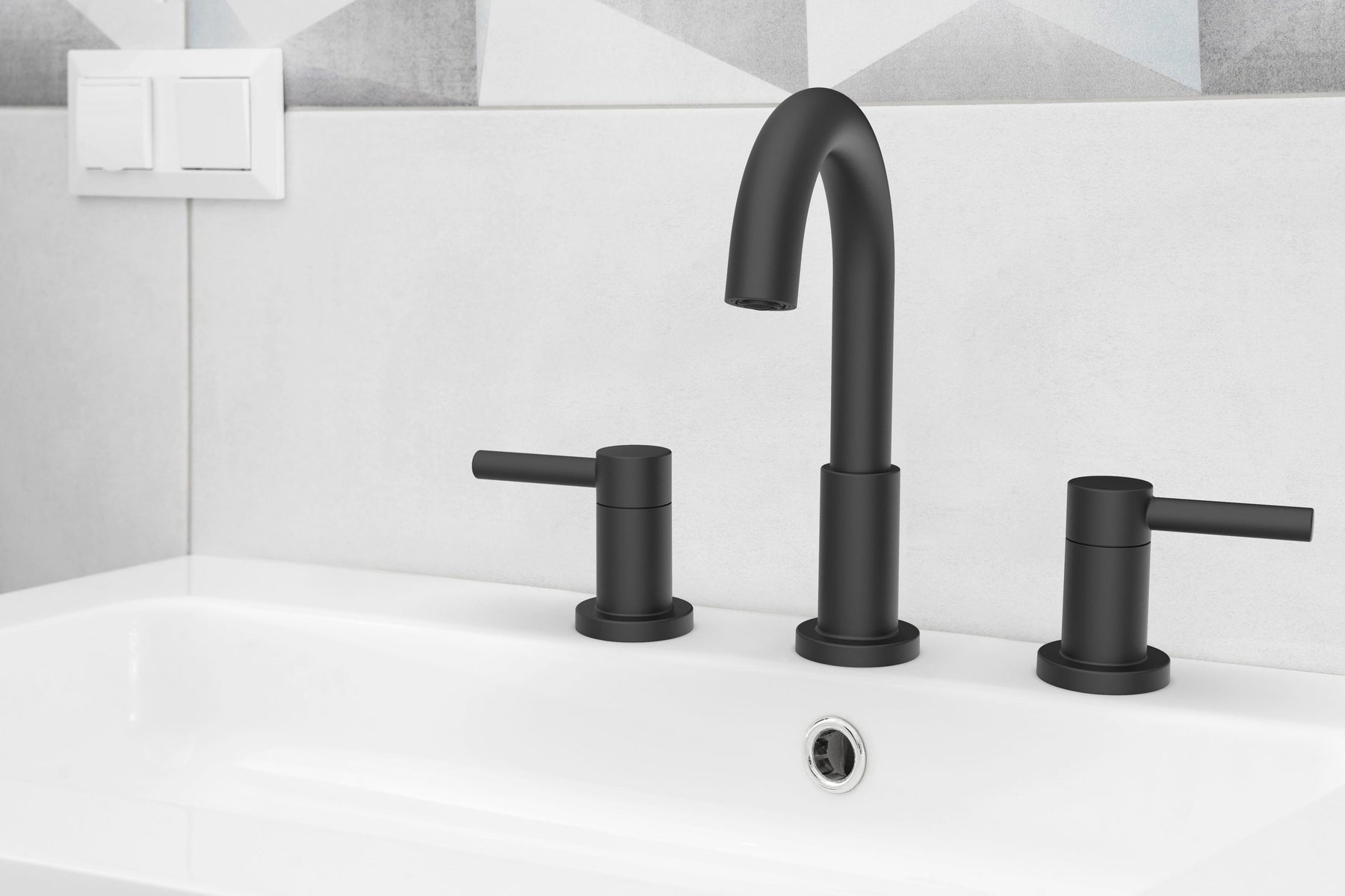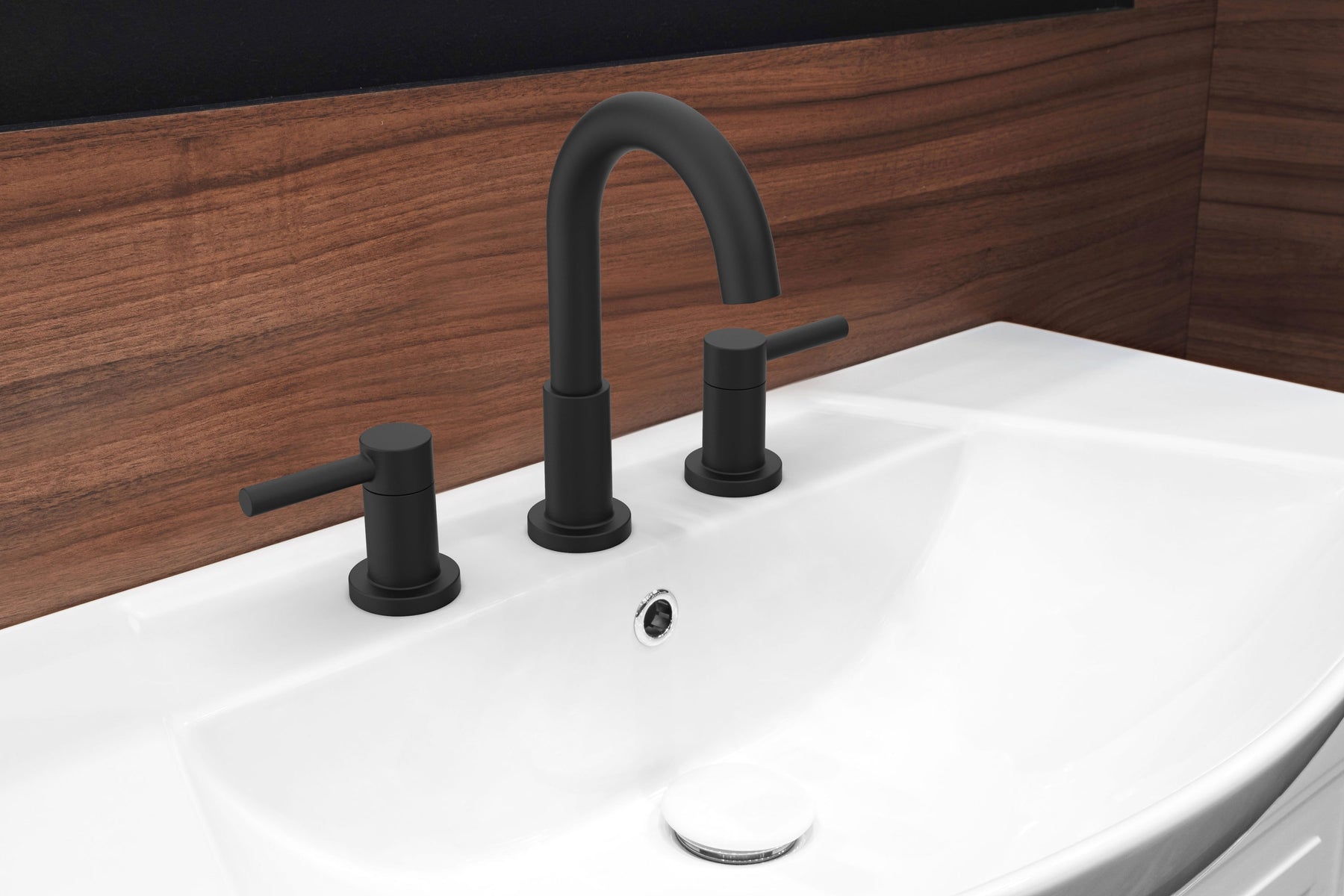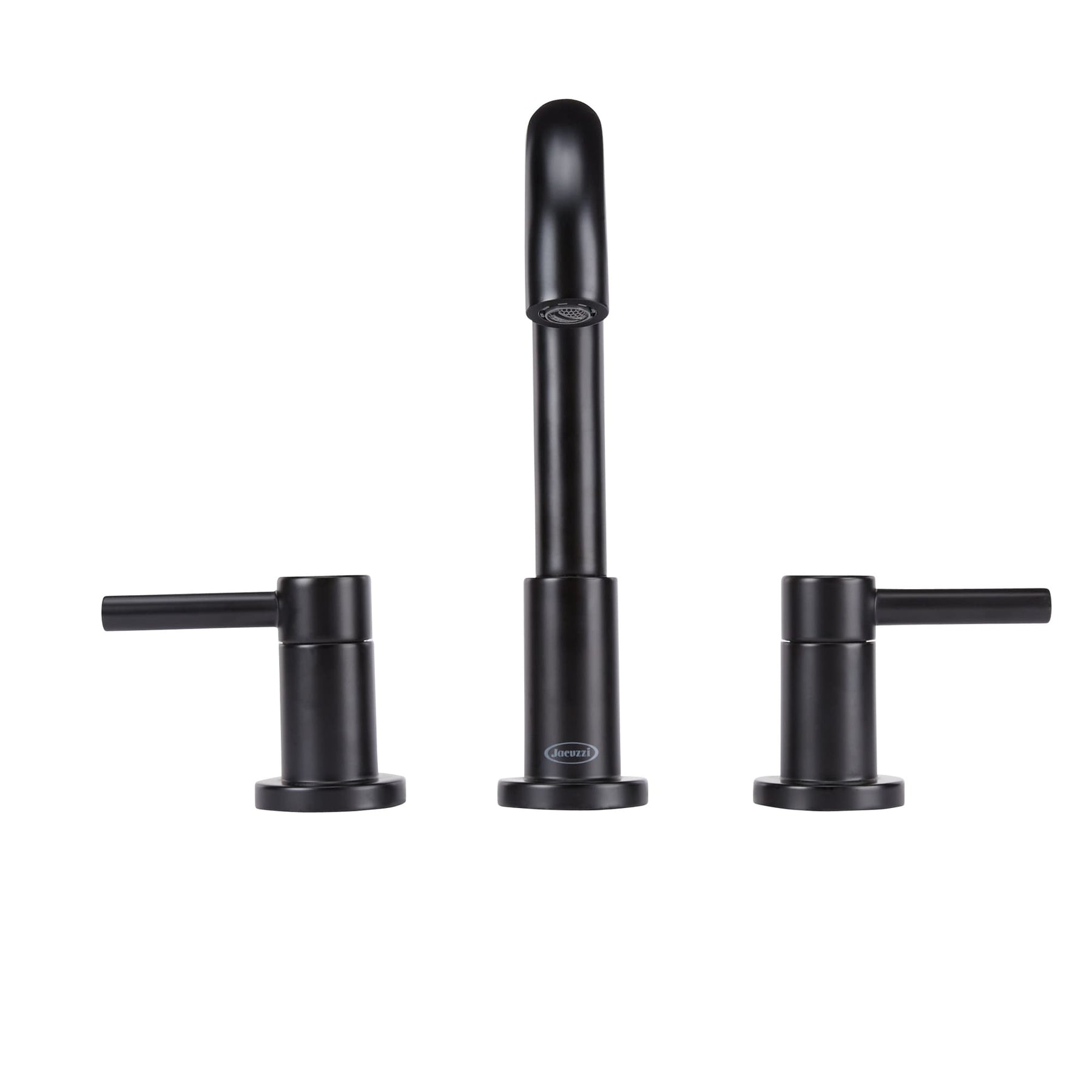 Streamlined and modern, the Jacuzzi Duncan widespread bathroom faucet delivers WaterSense efficiency at 1.2 GPM and a smooth high-arc spout. Matte black finish and lever handles pair with an included matching pop-up drain for a cohesive, contemporary look.