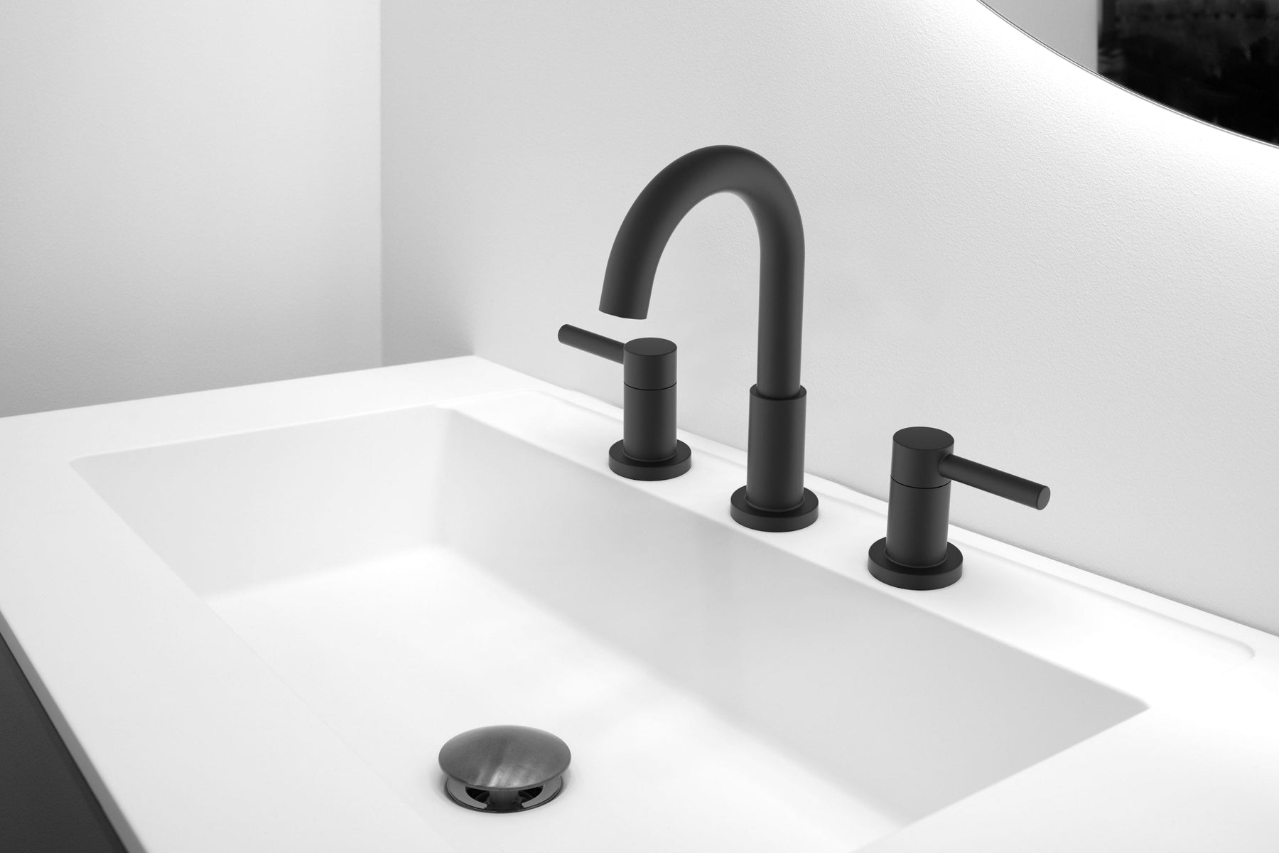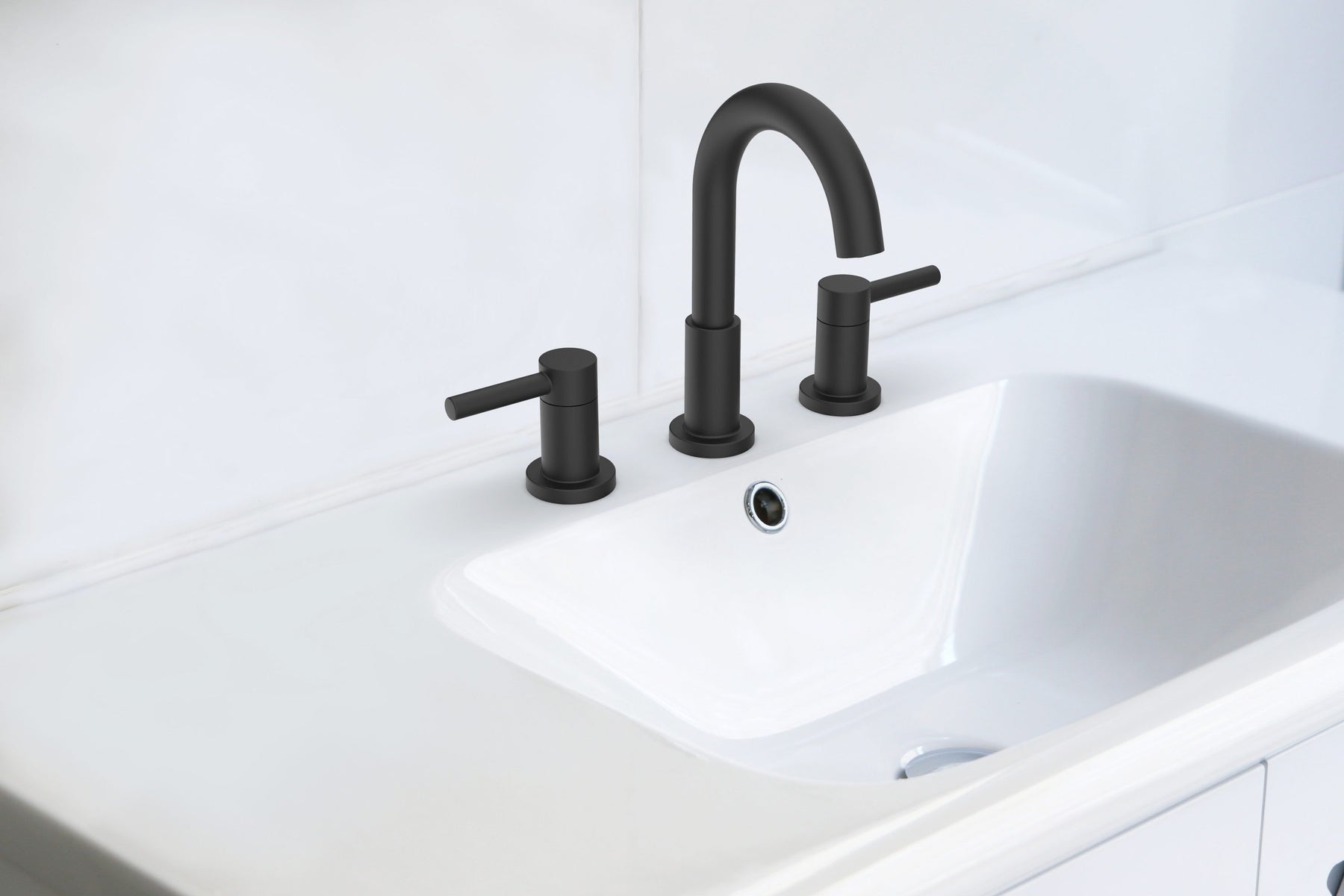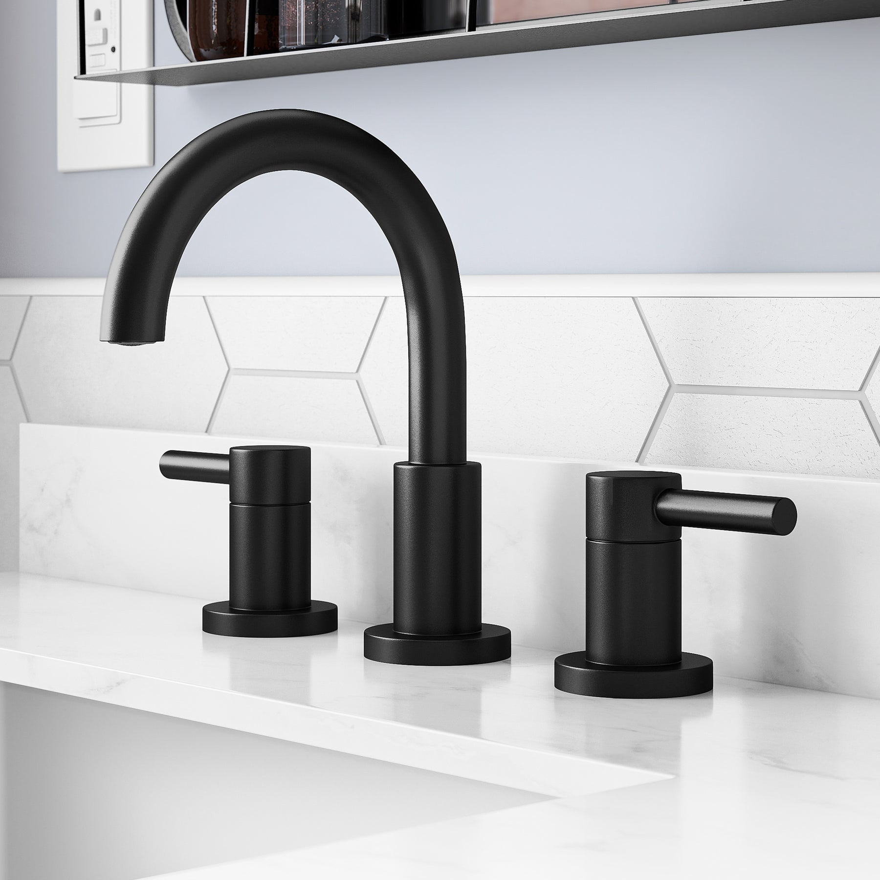 Streamlined and modern, the Jacuzzi Duncan widespread bathroom faucet delivers WaterSense efficiency at 1.2 GPM and a smooth high-arc spout. Matte black finish and lever handles pair with an included matching pop-up drain for a cohesive, contemporary look.