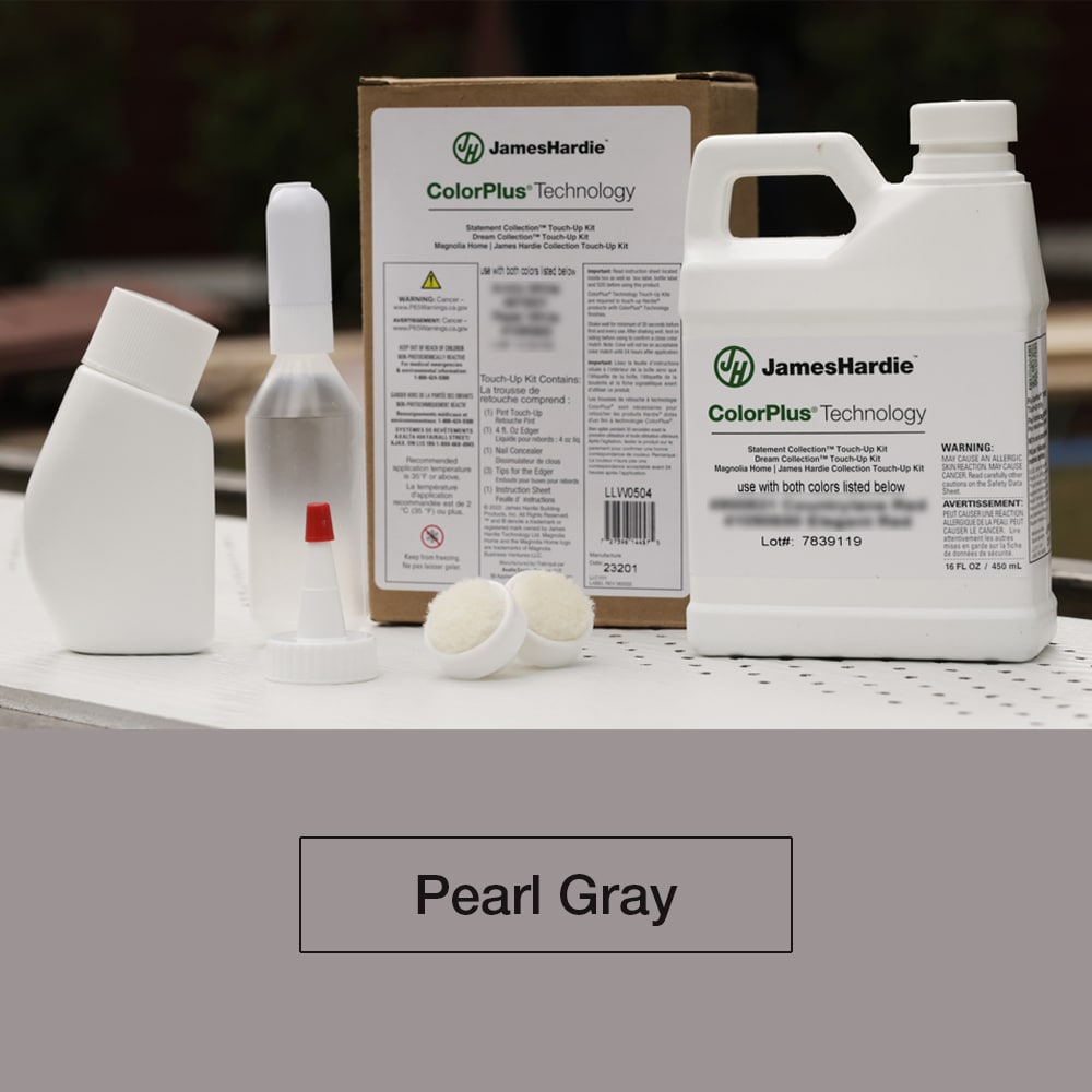 Restore and protect James Hardie ColorPlus Technology siding with this Pearl Gray touch-up kit. Specially formulated for Hardie finishes, it conceals small blemishes and seals cut edges for a uniform, long-lasting look.