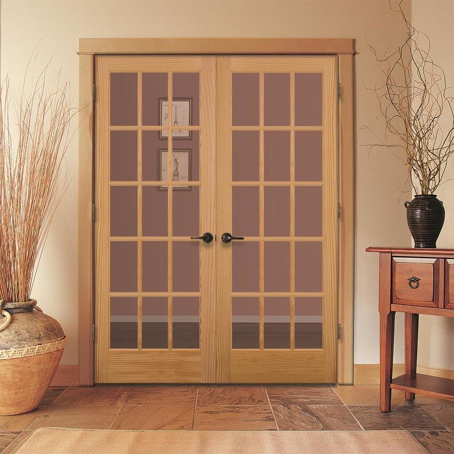 Full 15-lite pine door with true divided lites and clear beveled glass Door slab arrives unfinished Flexibility to paint or stain door the color of your choice or to enjoy natural changes to wood color over time Door is prehung in frame for easy installation Includes one right-hand opening door and one left-hand opening door that engage in the middle 5-Year limited warranty Trimmable allowance of 1/4 in. at door bottom only to preserve bore and hinge placement Additional door models, paint finishes and sizes are available by in-store special order, see your ARB265W associate for more information