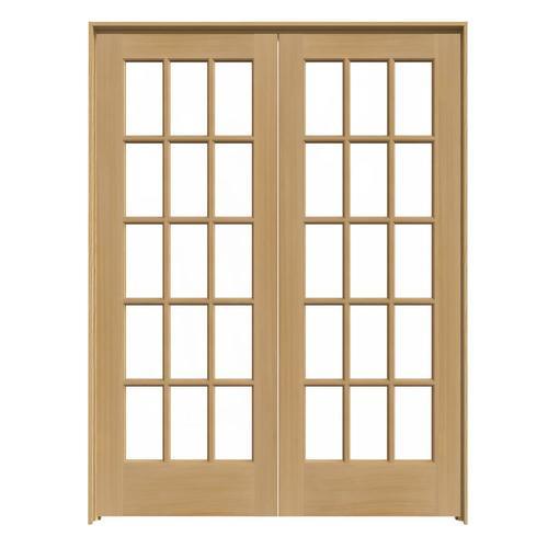 JELD-WEN 15 Lite Wood 60-in x 80-in Unfinished Clear Glass Unfinished Pine Wood Interior French Door (Hardware Included)
