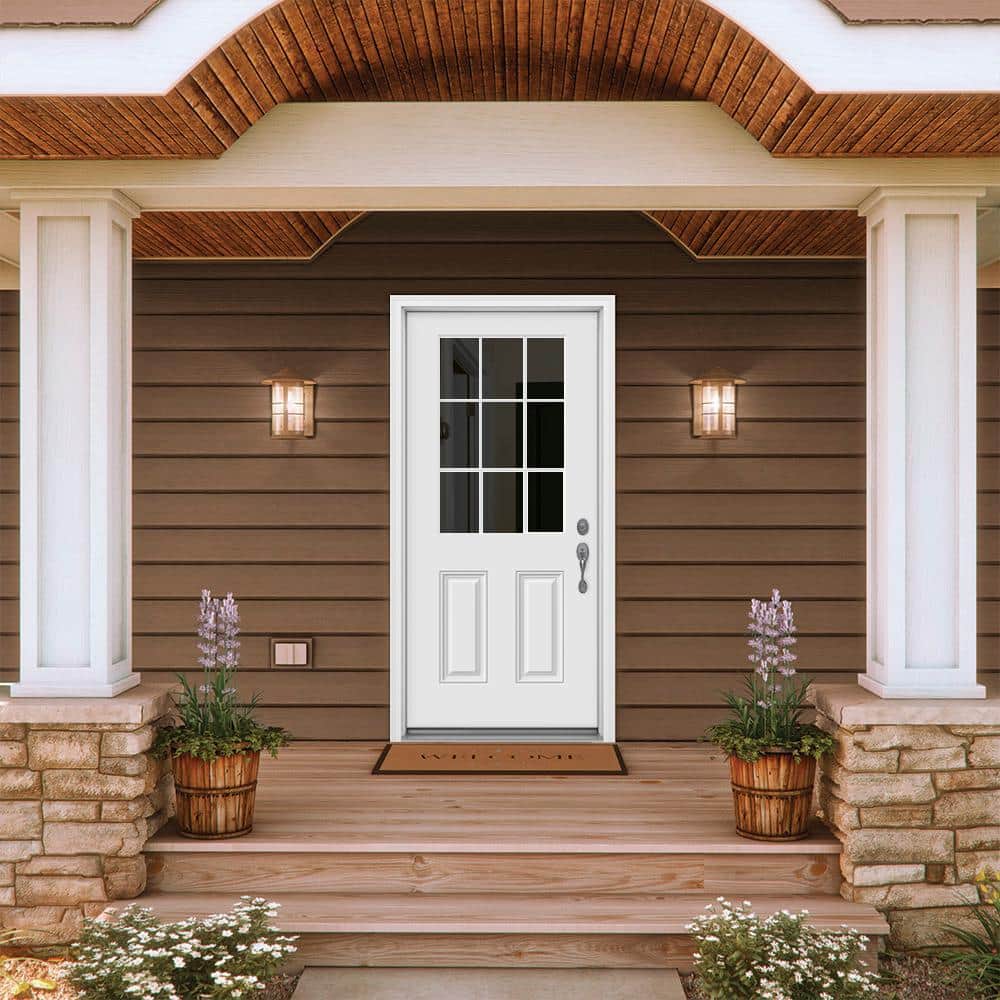 32 in. x 80 in. 9 Lite Primed Fiberglass Prehung Entry Door with Brickmould