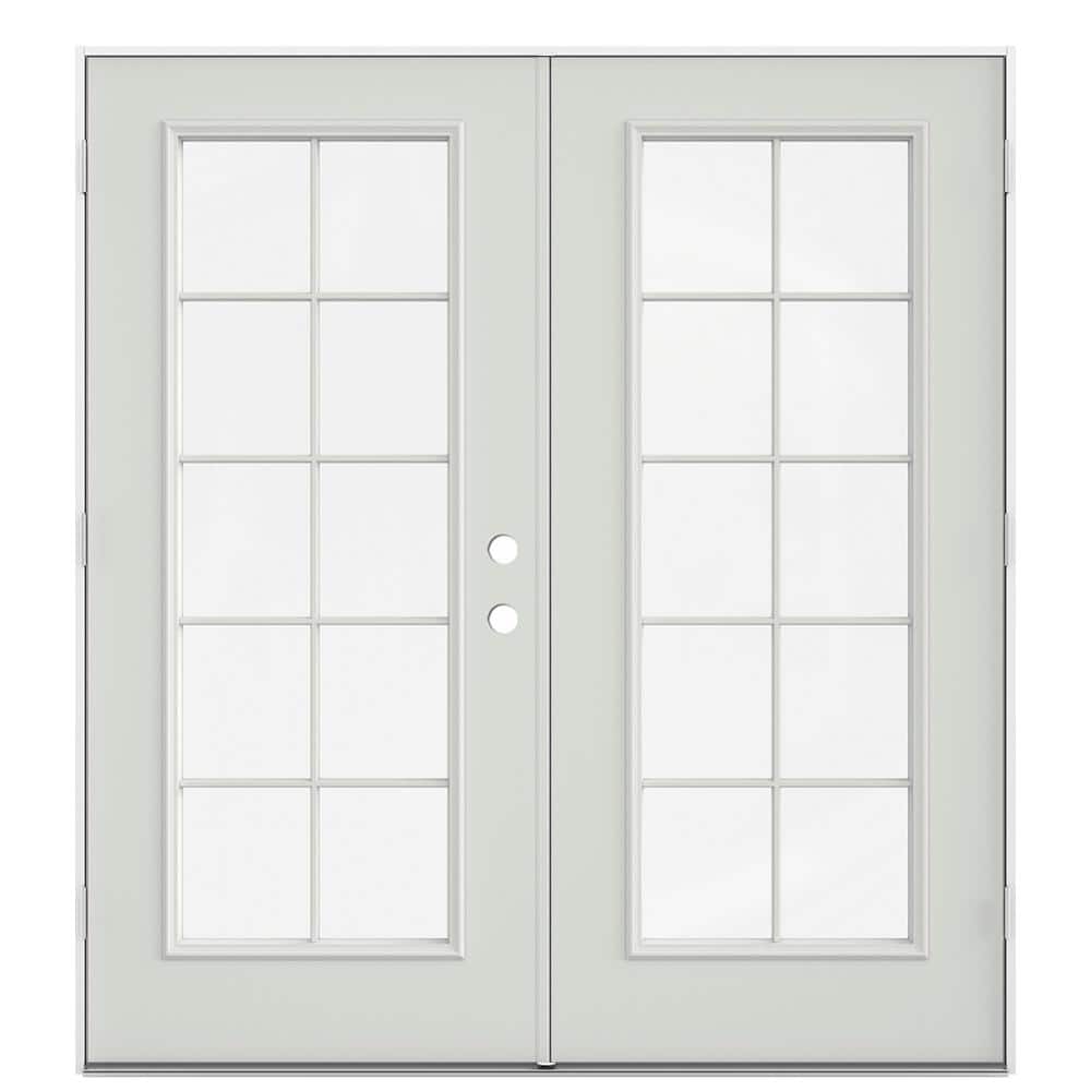 60 in. x 80 in. Right-Hand/Outswing Low-E 10 Lite Primed Fiberglass Double Prehung Patio Door