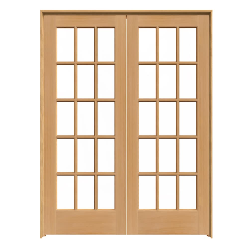 JELD-WEN 15 Lite Wood 60-in x 80-in Unfinished Clear Glass Unfinished Pine Interior French Door, Prehung (Hardware Included)
