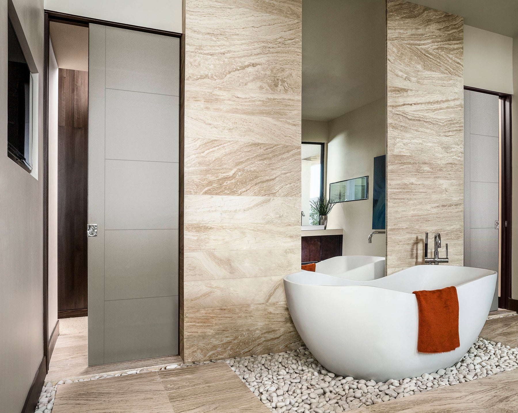A: No. The kit includes the pocket frame and hardware only; the door slab is sold separately.