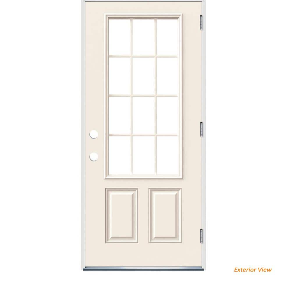 JELD-WEN 32 in. x 80 in. 12 Lite Primed Steel Prehung Left-Hand Outswing Entry Door