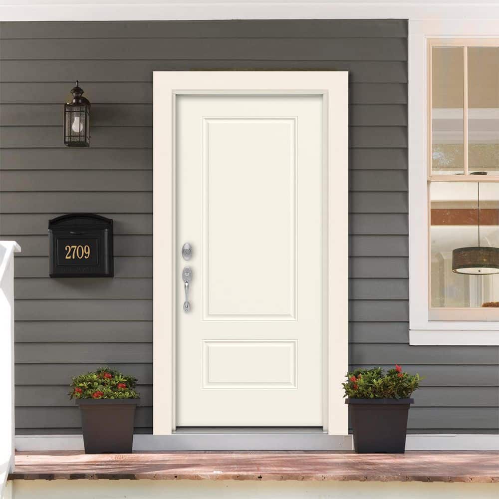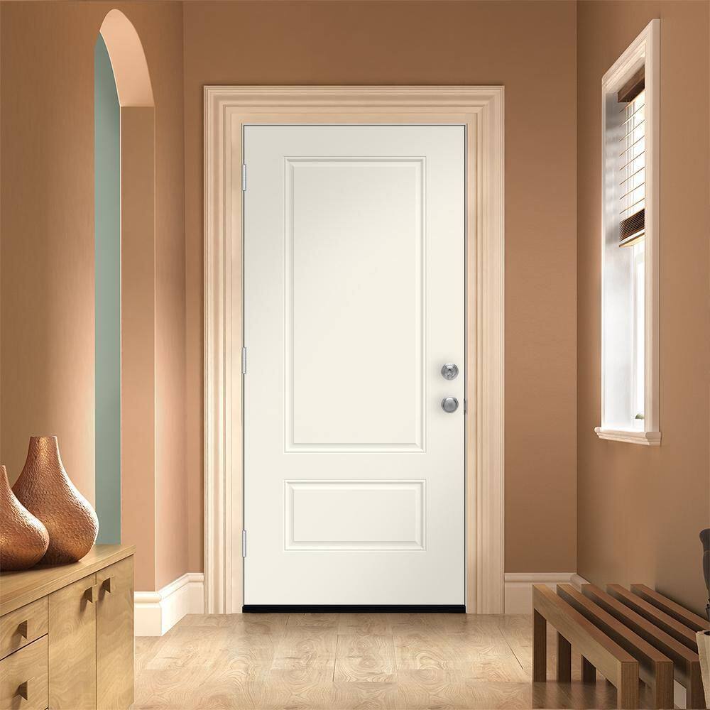 JELD-WEN 36 in. x 80 in. 2 Panel Euro Right-Hand Inswing Primed Steel Prehung Front Door