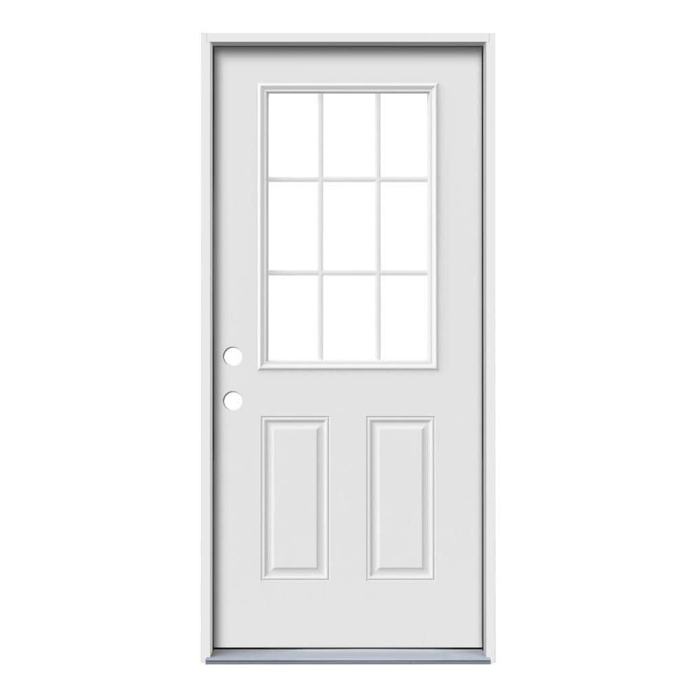 This JELD-WEN prehung steel entry door delivers classic style with a durable, primed finish ready to paint. The half-lite Low-E glass lets in natural light while the insulated core, weatherstripping, and adjustable sill help boost energy efficiency and reduce drafts.