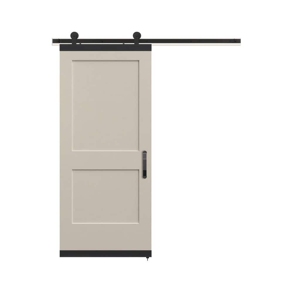 JELD-WEN 36 in. x 84 in. Monroe Primed Smooth Molded Composite MDF Barn Door with Rustic Hardware Kit