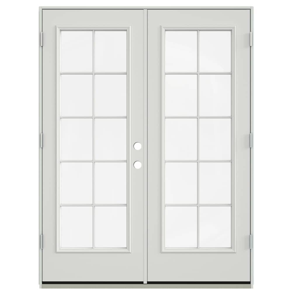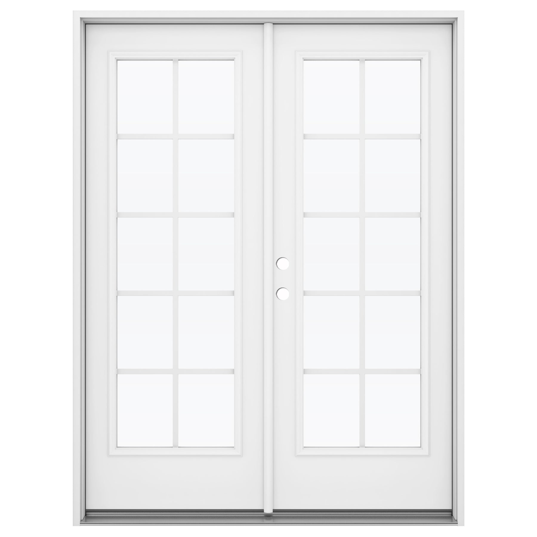 JELD-WEN 60-in x 80-in 4-9/16-in Jamb Low‑E External Grilles Primed Steel French Right-Hand Inswing Double Patio Door
