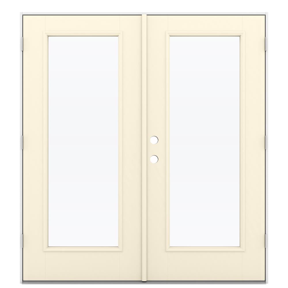 JELD-WEN 72-in x 80-in 4-9/16-in Low-E Bisque Fiberglass French Left-Hand Outswing Double Patio Door