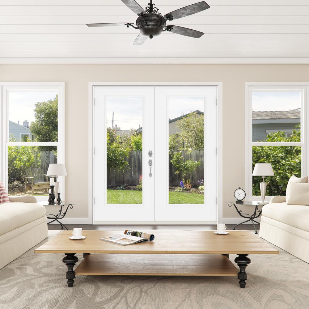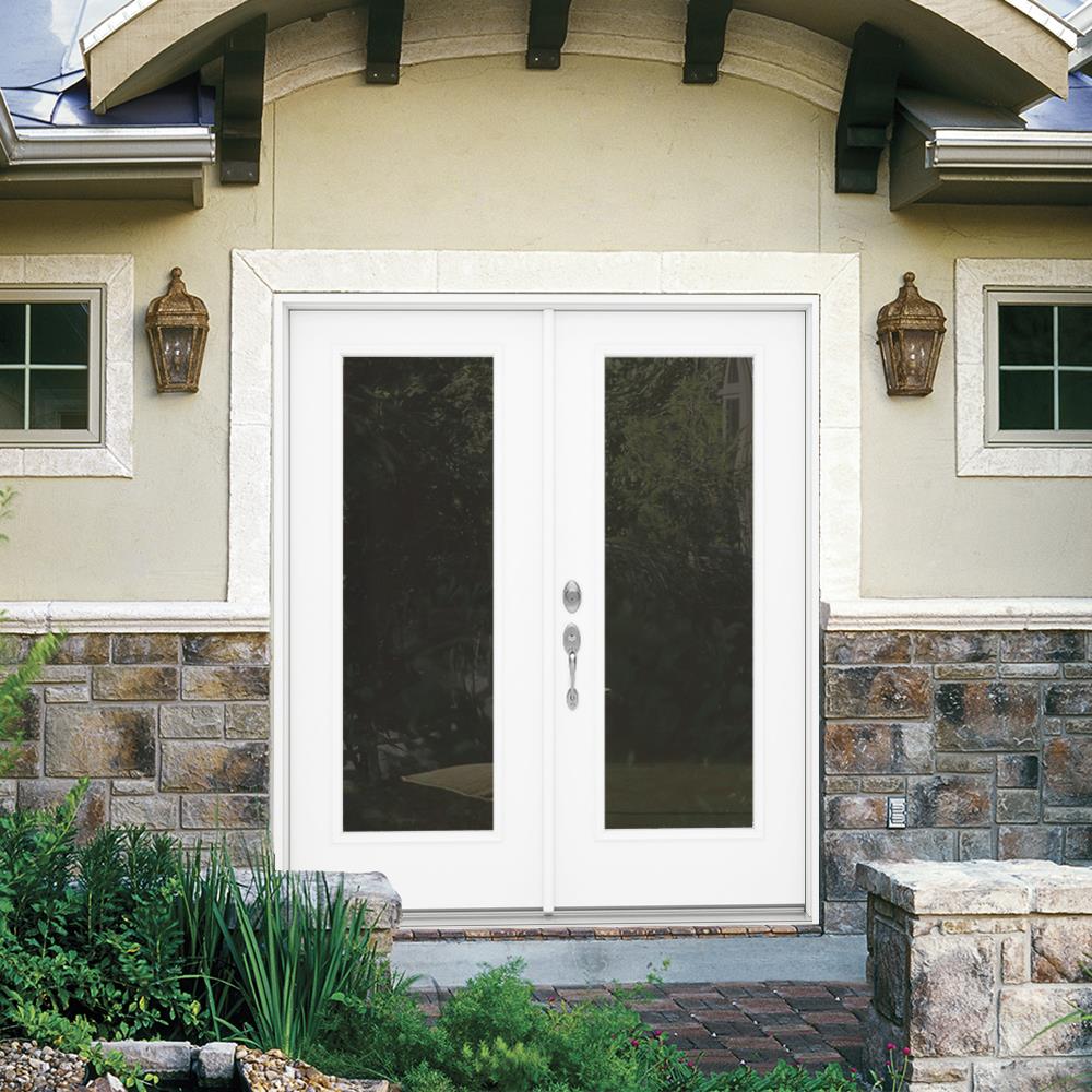 JELD-WEN 72-in x 80-in 4-9/16-in Low-E Primed Steel French Right-Hand Inswing Double Patio Door