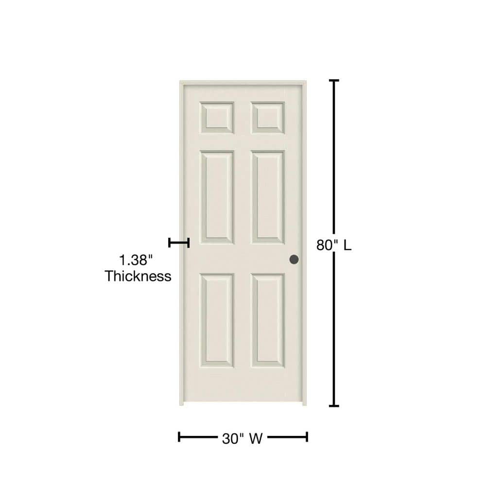 The JELD-WEN Colonist prehung interior door features a classic 6-panel design molded from durable composite with a primed, paint-ready finish. Its hollow core keeps weight down for easier handling while the included flat jamb and satin nickel hinges simplify installation.