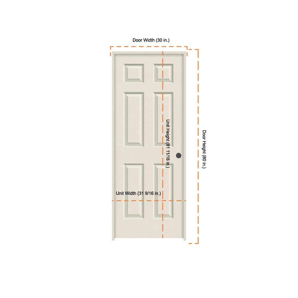 JELD-WEN Colonist 30 in. x 80 in. Primed 6-Panel Hollow Core Molded Composite Left-Hand Single Prehung Interior Door