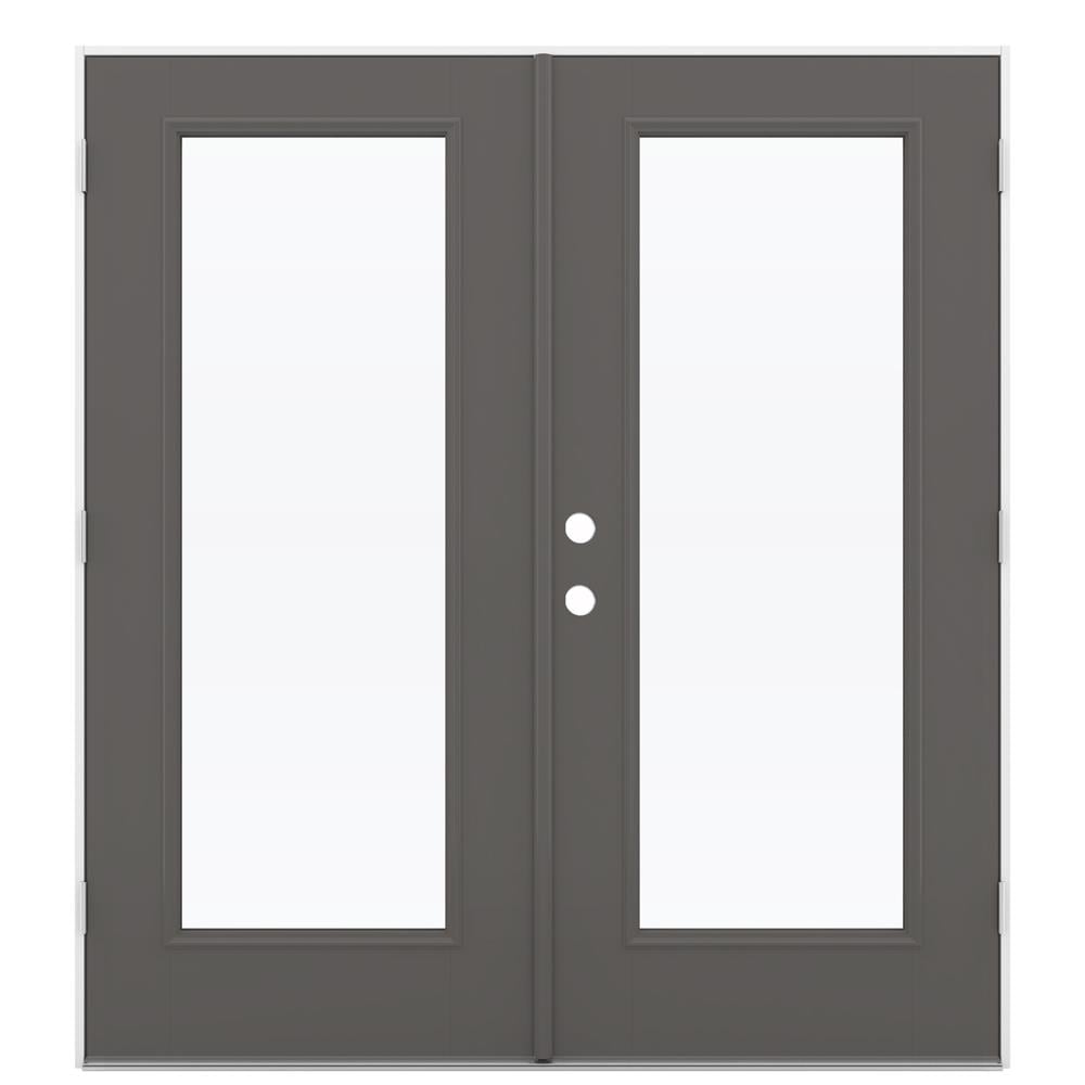 JELD-WEN French 72-in x 80-in 4-9/16-in Low-E Timber Gray Fiberglass Left-Hand Outswing Double Patio Door