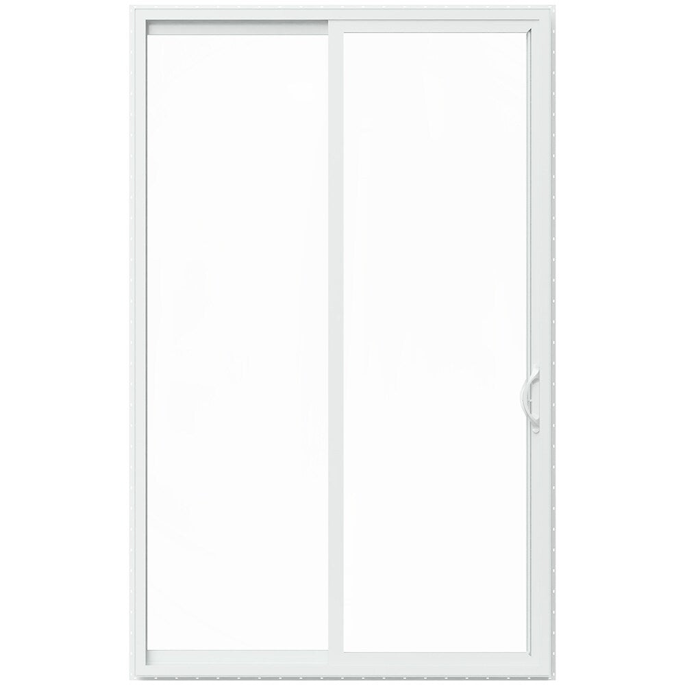 JELD-WEN V-2500 96-in x 80-in x 4-9/16-in Jamb White Vinyl Left-Hand Sliding Double Patio Door with Low-E Glass, Screen Included
