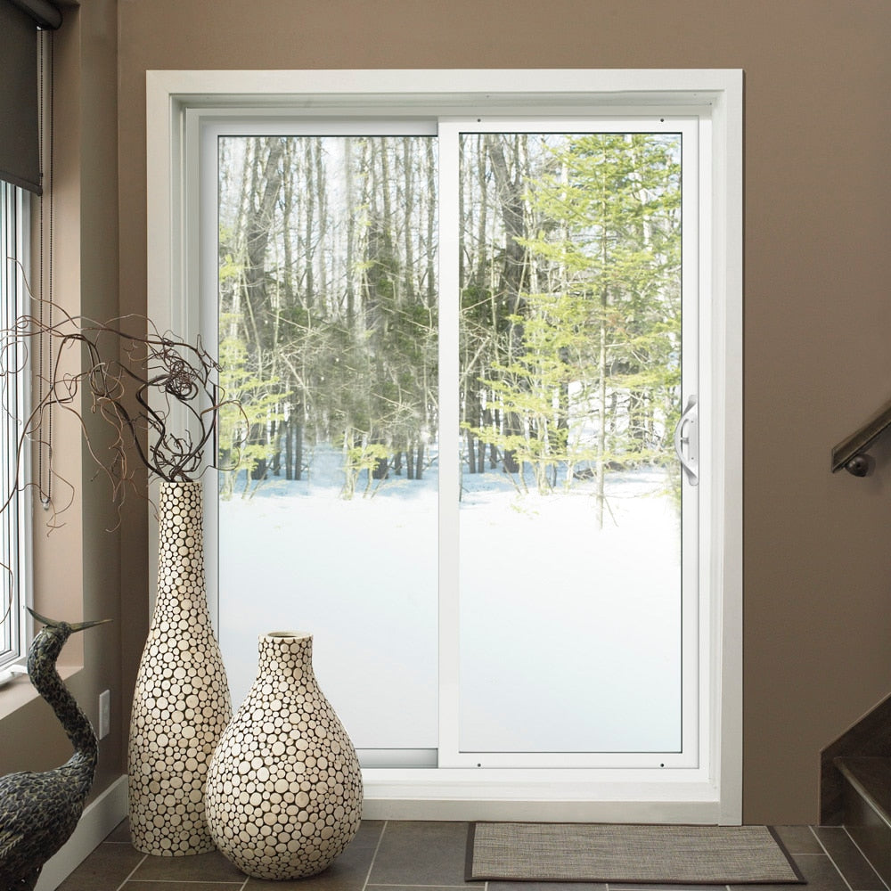 This sliding patio door draws a luminous ribbon of daylight across the room, creating an effortless connection to the landscape. Its crisp white vinyl frame feels tailored and modern, letting art, furnishings, and views take center stage. Style it with floor-length sheers and a textured natural rug to amplify the serene, indoor‑outdoor vibe. It’s a refined essential that elevates everyday living with light and ease.