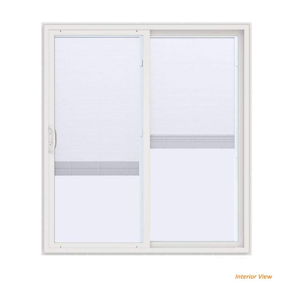 This JELD-WEN V-4500 sliding patio door features a durable Black FiniShield vinyl frame and full-lite Low-E insulated glass with factory-sealed internal mini blinds. Designed for right-hand operation, it delivers modern style, energy efficiency, and low-maintenance privacy for patios and outdoor entries.