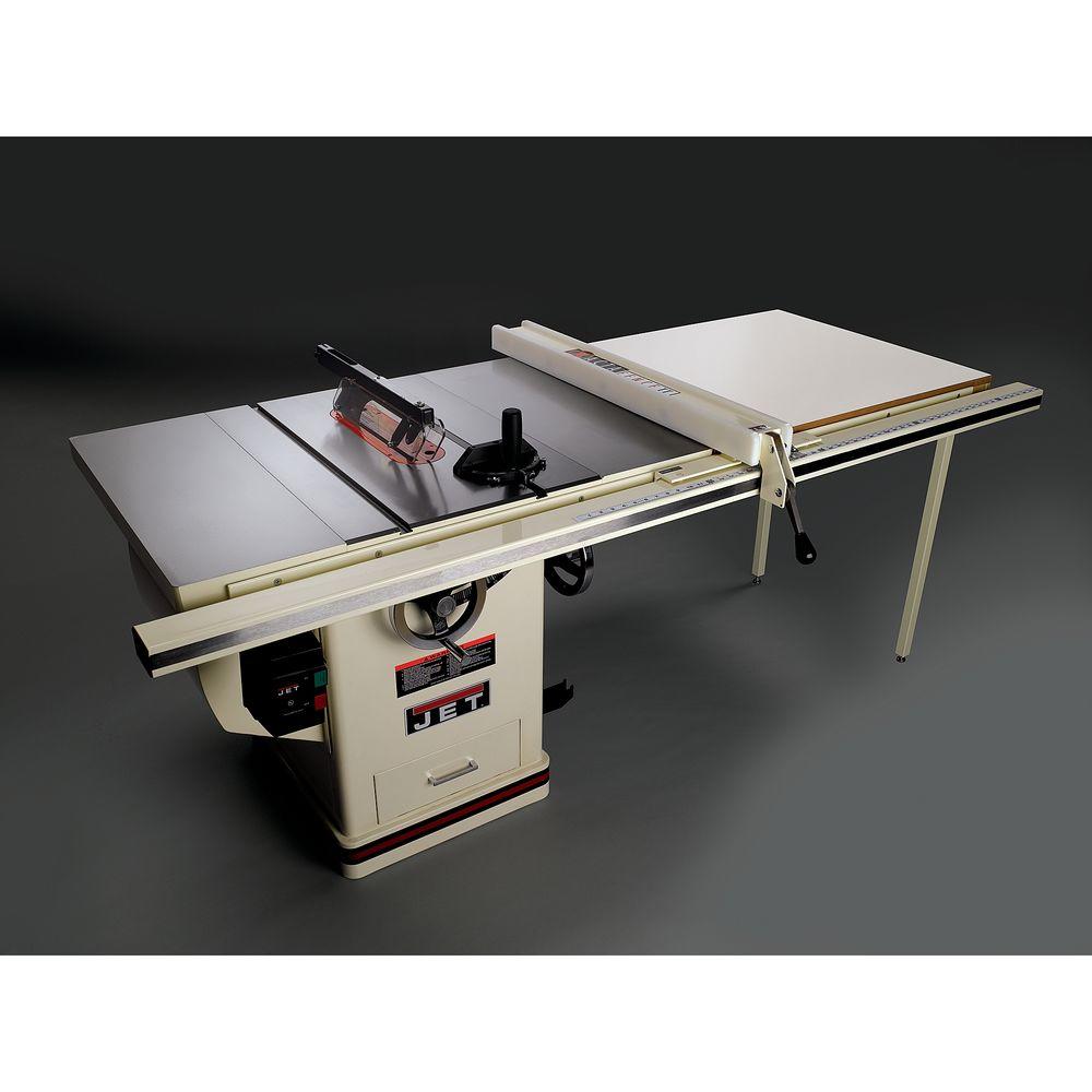 If you've ever wondered about what a table saw can really do, look no further. Introducing the new JET 10 in. DELUXE XACTA Saw. The Quick release riving knife and integrated arbor lock keeps the operator safe and more efficient. The DELUXE XACTA Saw offers an upgraded Poly-V belt drive system for smooth operation and optimal power transfer, a fully shrouded blade for highly efficient dust collection. The 26 in. x 30 in. wings and deeper table gives you even more cast iron to work on. A built-in 12.5 in. x 18 in. x 4 in. Storage drawer sealed from the cabinet keeps your necessities within arm’s reach, also includes an on-board fence and miter gauge storage.