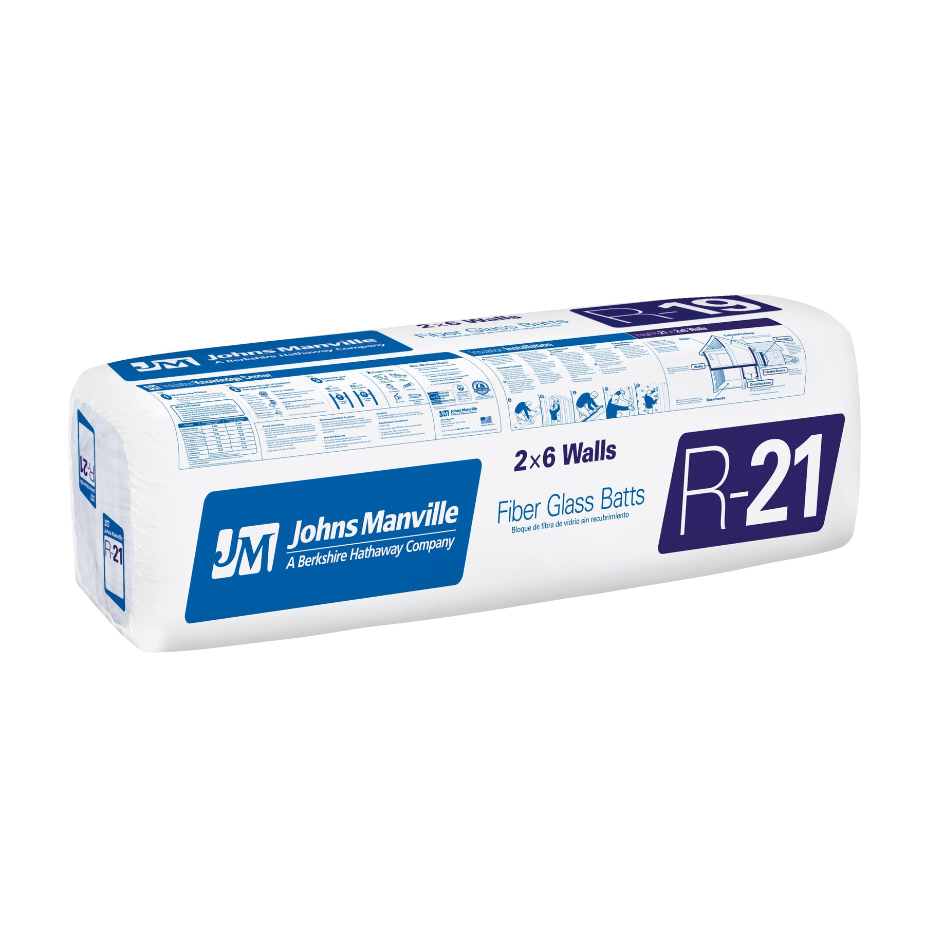 Johns Manville R-21 kraft-faced fiberglass batts are designed for 2x6 wood-stud walls to help improve energy efficiency and reduce noise. The kraft facing provides a built-in vapor retarder for moisture control in concealed applications like exterior walls.