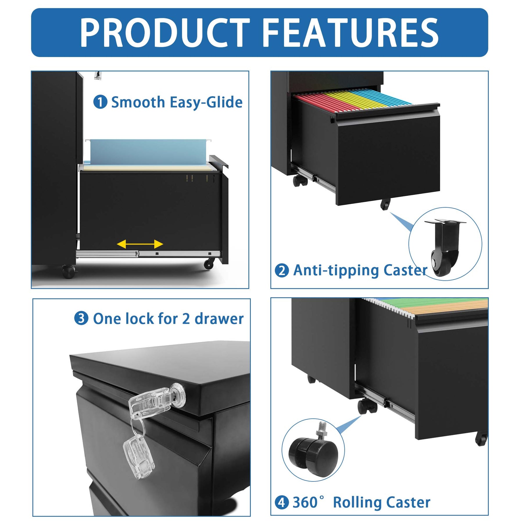 • Security: Locking system with two keys ensures document safety across all drawers.