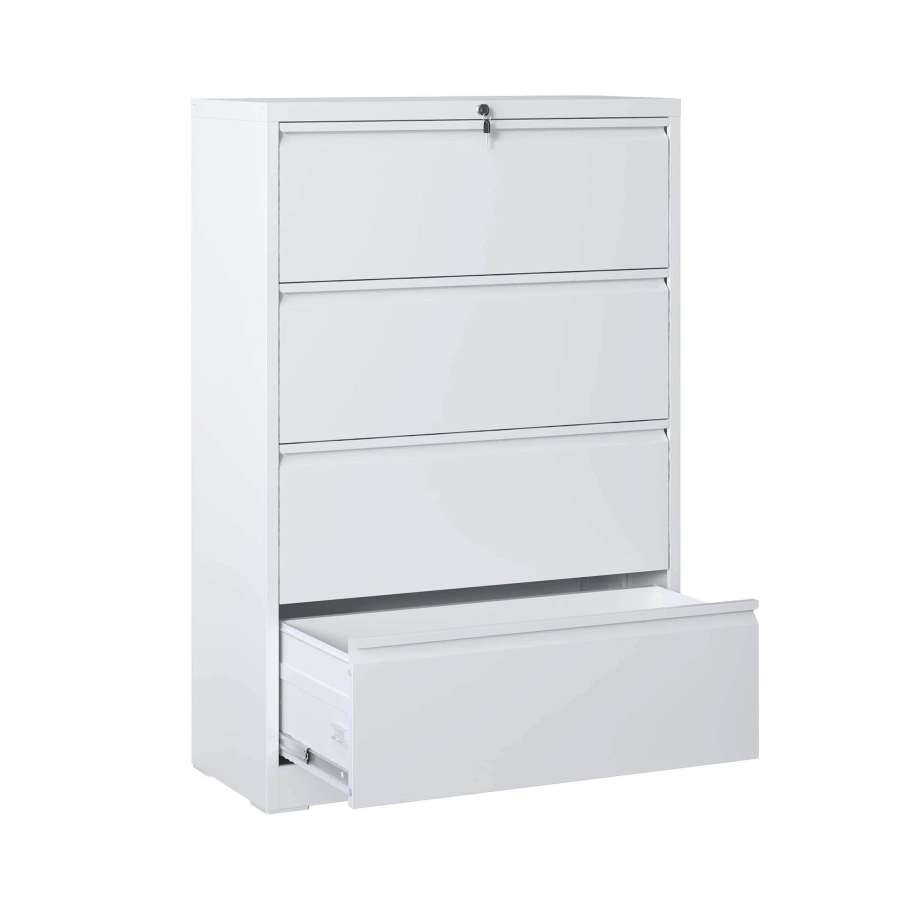 The Kahomvis Steel Filing Cabinet combines durable steel construction with a sleek, modern aesthetic, ideal for any professional office or home workspace. With a robust storage capacity and advanced security features, this white cabinet maximizes functionality while maintaining elegance.