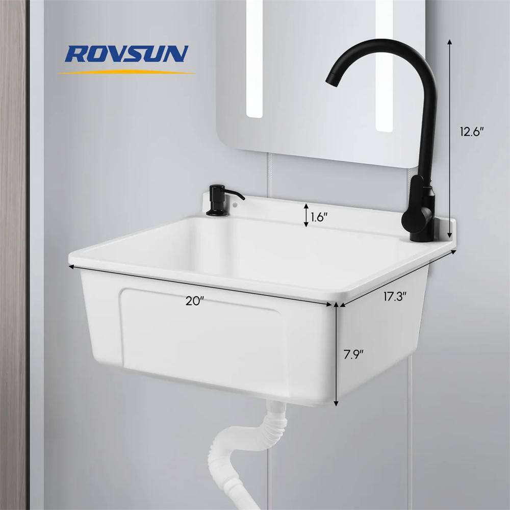 Karl home 17.5 in. Wall Mount Laundry Utility Sink with Faucet in White