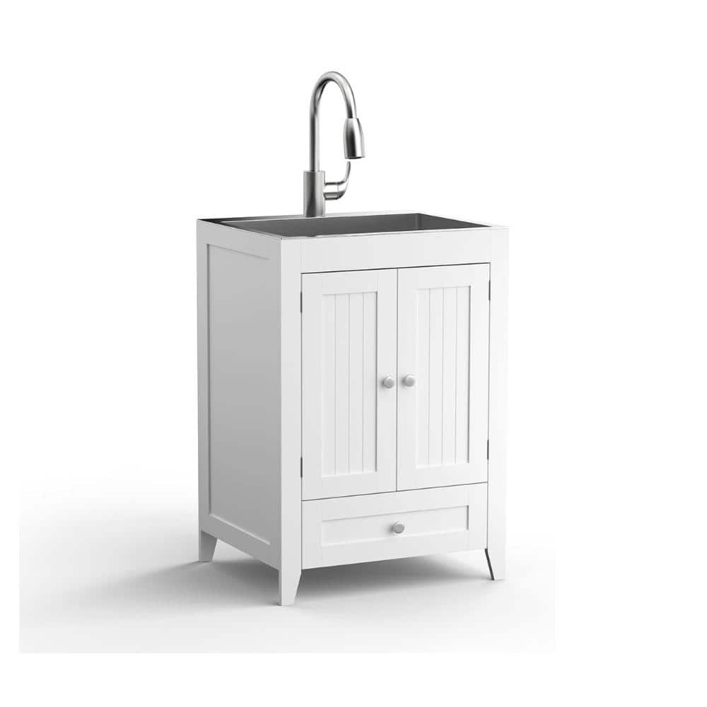 Karl home 24 in. D Drop-In Laundry/Utility Sink in White with Cabinet and Pull-Out Sprayer Faucet