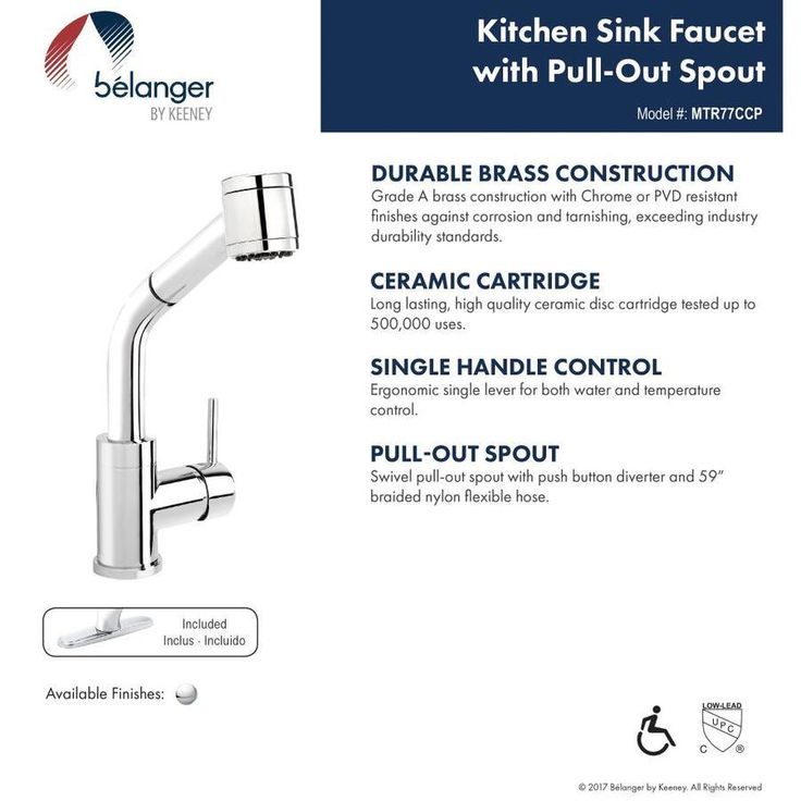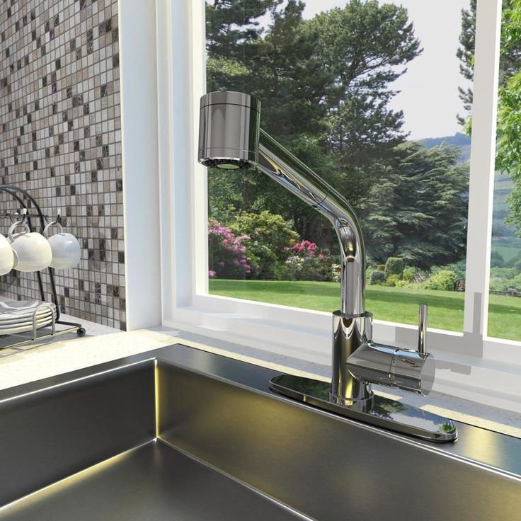 Keeney Metro Polished Chrome 1-Handle Deck-Mount Pull-Out Handle Kitchen Faucet (Deck Plate Included)