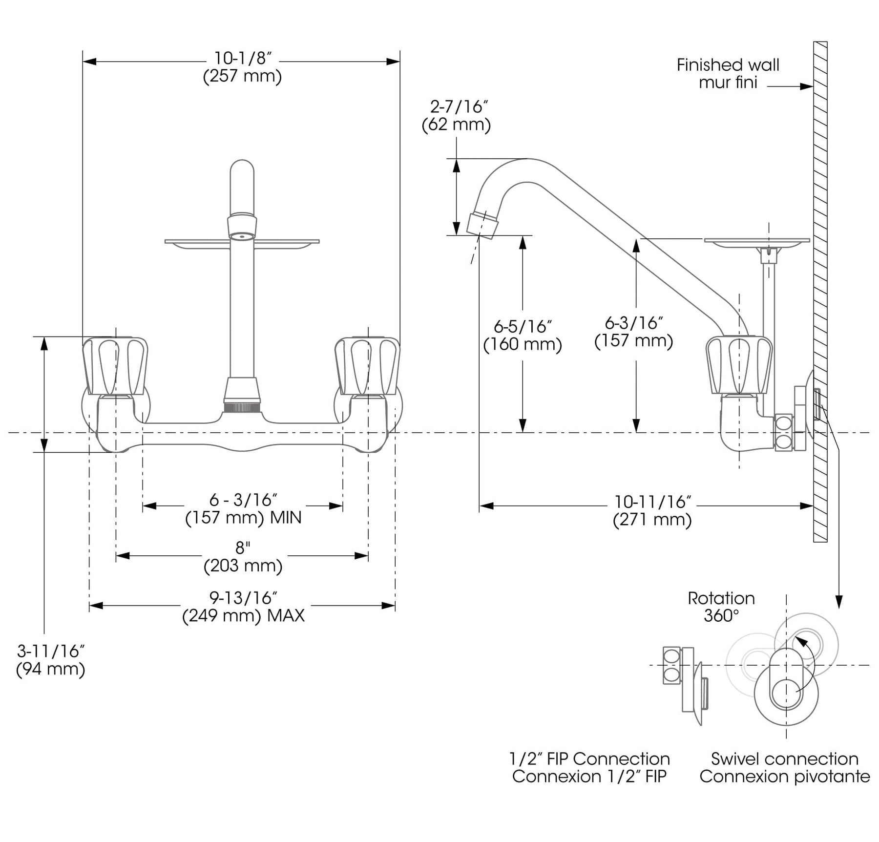 - Adjustable Centers: Fits 6-3/16 in to 9-13/16 in wall-mount installations