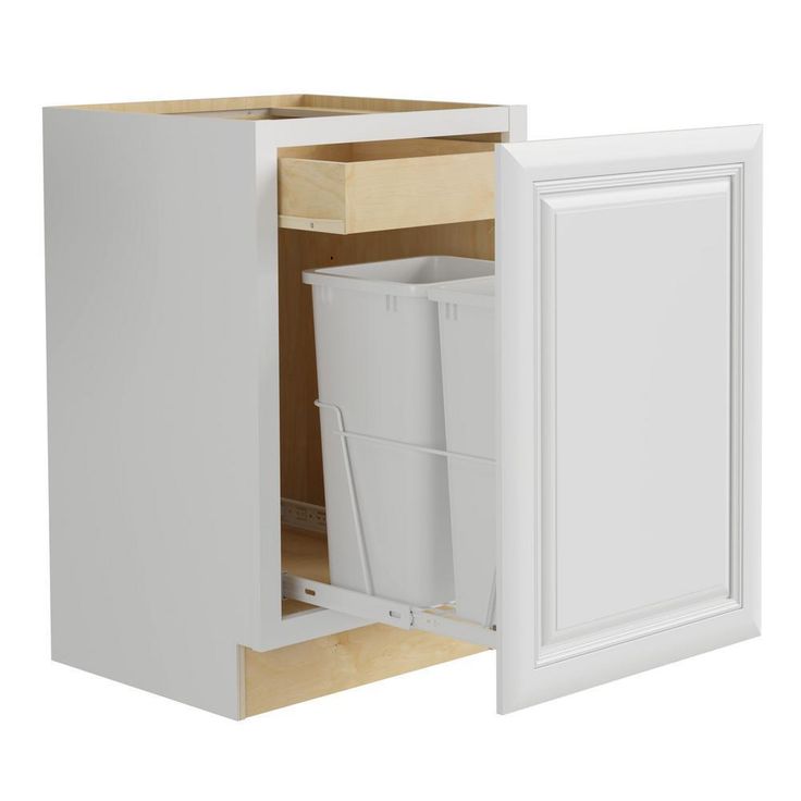 - Bonus hardwood dovetail rollout tray for storage of trash bags and cleaning supplies