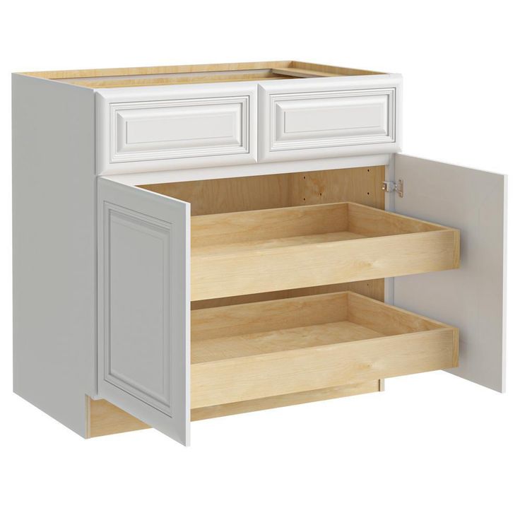 - 2 hardwood dovetail rollout trays provide easy access to food or dishes