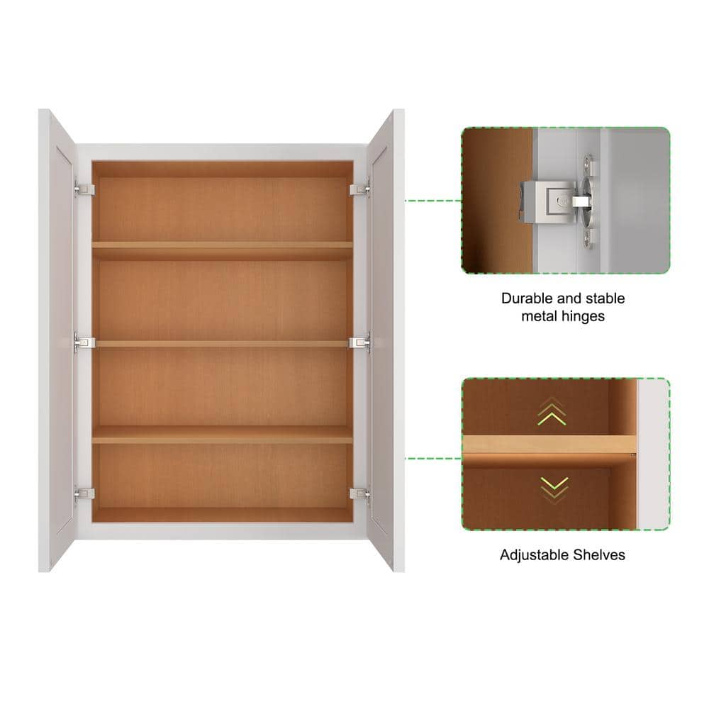 27 in W x 12 in D x 30 in H in Shaker Dove Plywood Ready to Assemble Kitchen Wall Cabinet with Doors and Shelves
