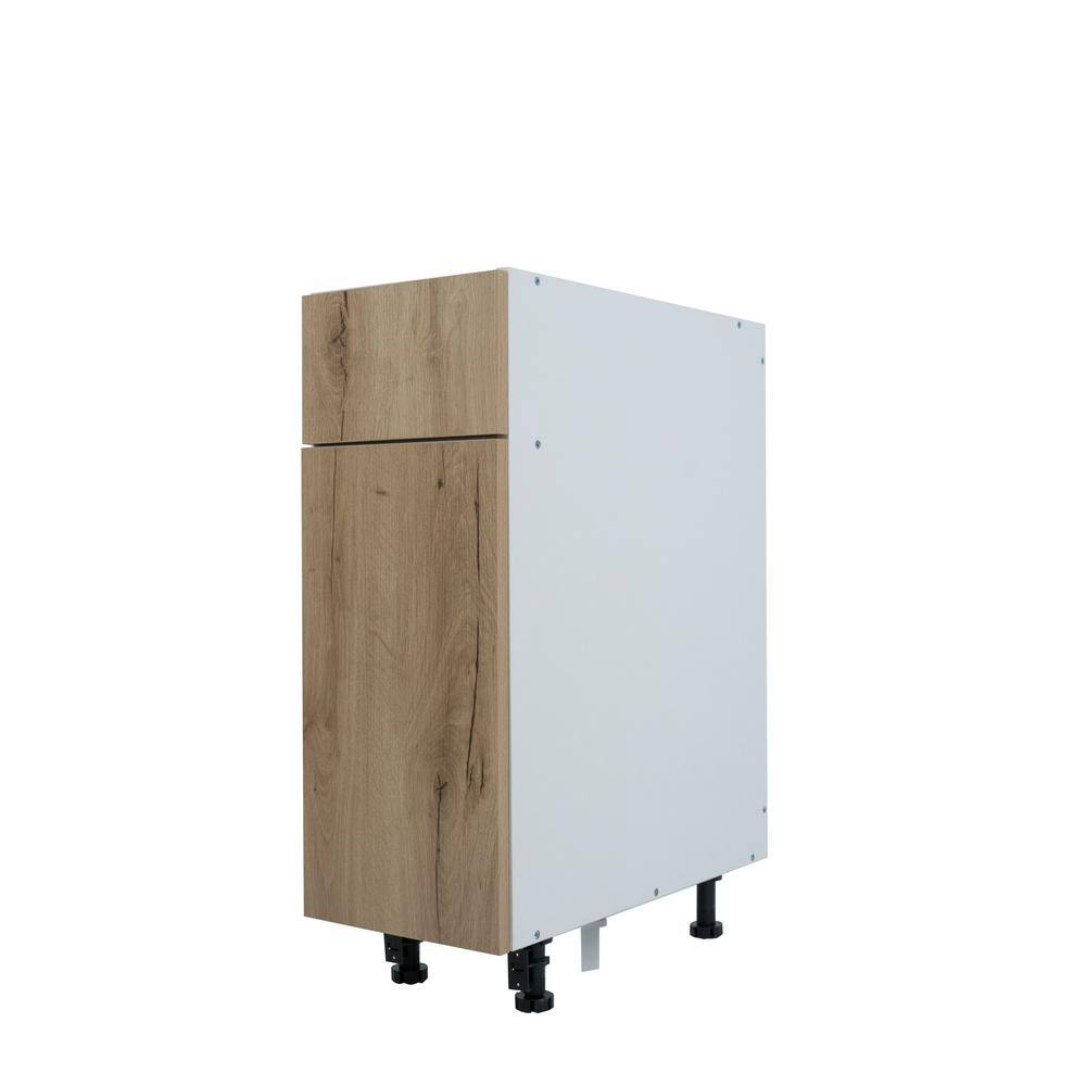 Transform your kitchen into a sanctuary of style with the Cambridge Radiance kitchen cabinet. Its light oak finish radiates warmth, effortlessly blending with various interior styles, from rustic to ultra-modern. The standout frameless design with sleek slab doors gives it a timeless quality. Consider pairing it with stainless steel appliances or brushed gold fixtures for a cutting-edge look that exudes sophistication. The effortless elegance of this cabinet makes it a quintessential element of a luxury home kitchen.