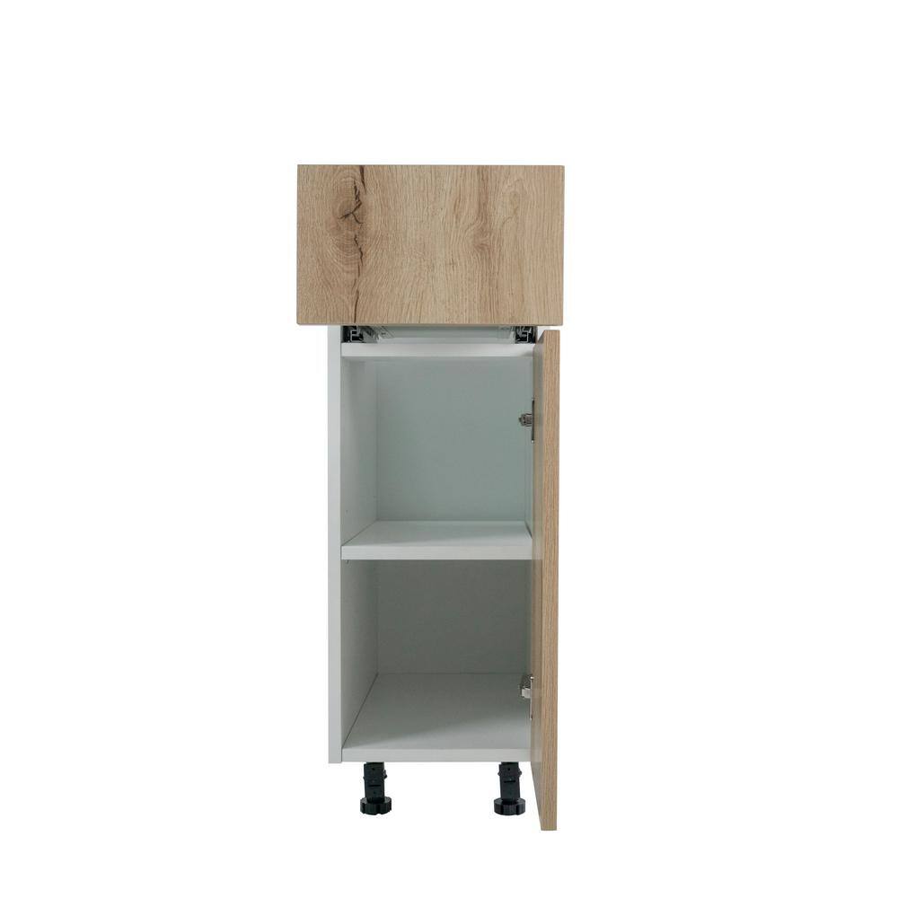 Enhance your kitchen with Cambridge's Radiance ready-to-assemble cabinet. Boasting a sleek Light Oak finish and a durable 3/4-inch MDF build, its modern frameless design ensures smooth integration into contemporary spaces. Equipped with soft-close technology for a premium feel, this cabinet promises both functionality and style.