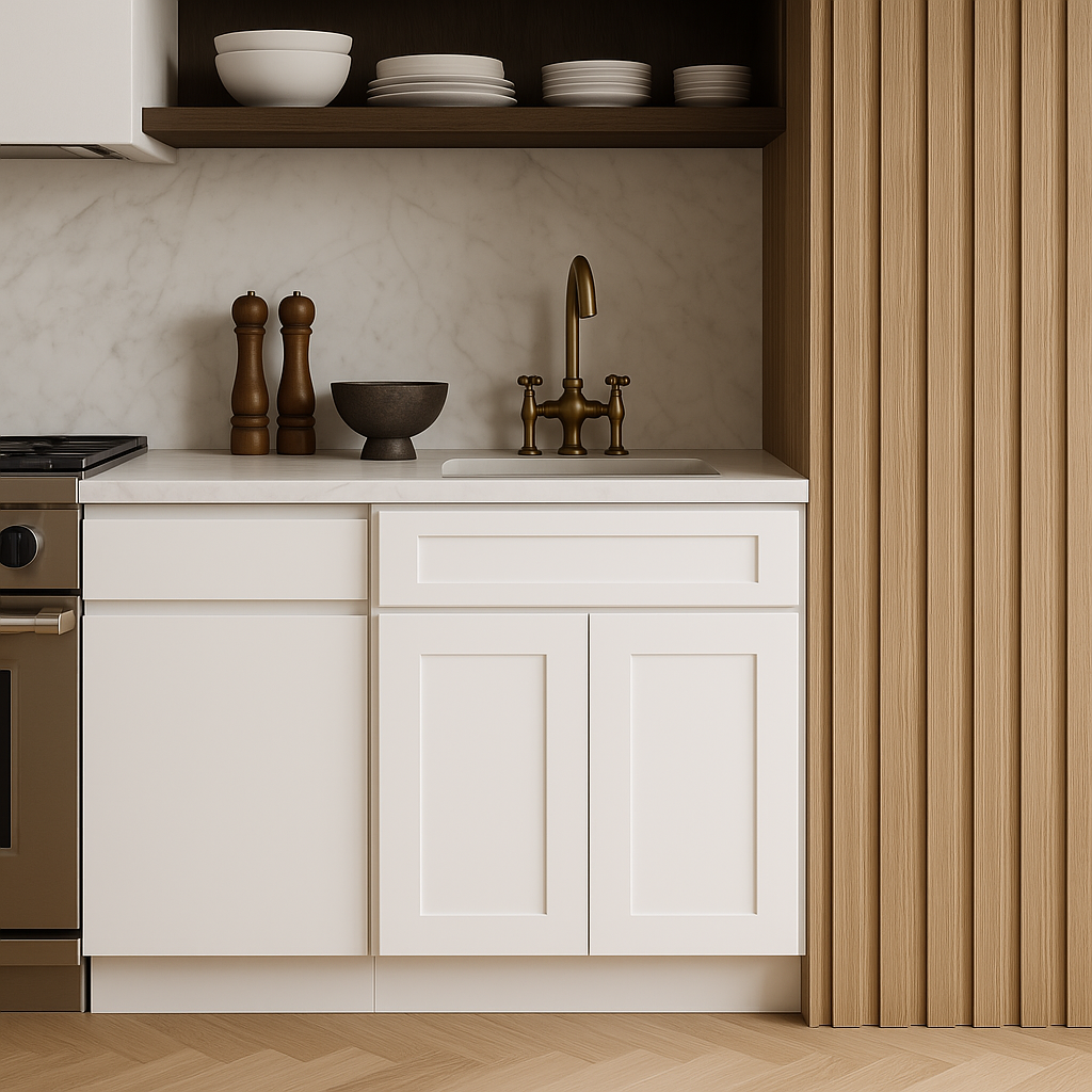 The CASAINC White Shaker Kitchen Base Cabinet combines functionality and style, featuring a durable plywood construction and a sleek white shaker finish. Its soft-close drawer and ample storage space make it a perfect addition to any kitchen.