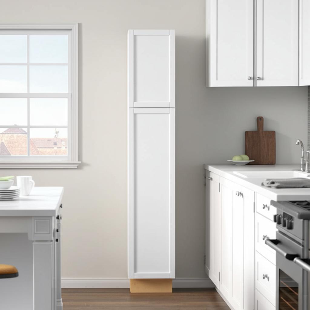 The Hampton Bay Courtland Shaker Pantry Cabinet in Polar White combines timeless design with practical functionality. Featuring a durable laminate finish, adjustable shelves, and hidden self-closing hinges, this cabinet is perfect for organizing your kitchen essentials while adding a touch of elegance.