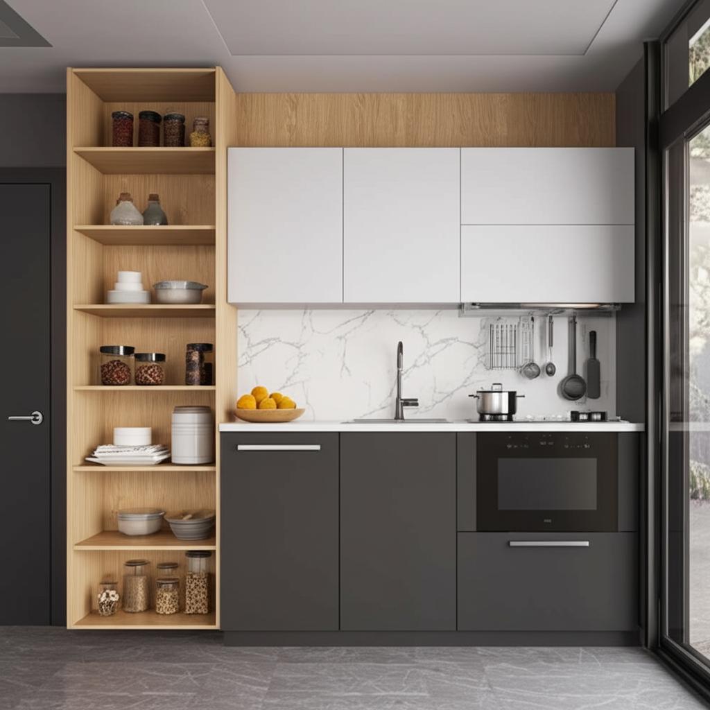 - Clean Aesthetic: Contemporary slab door style with a minimalist look.