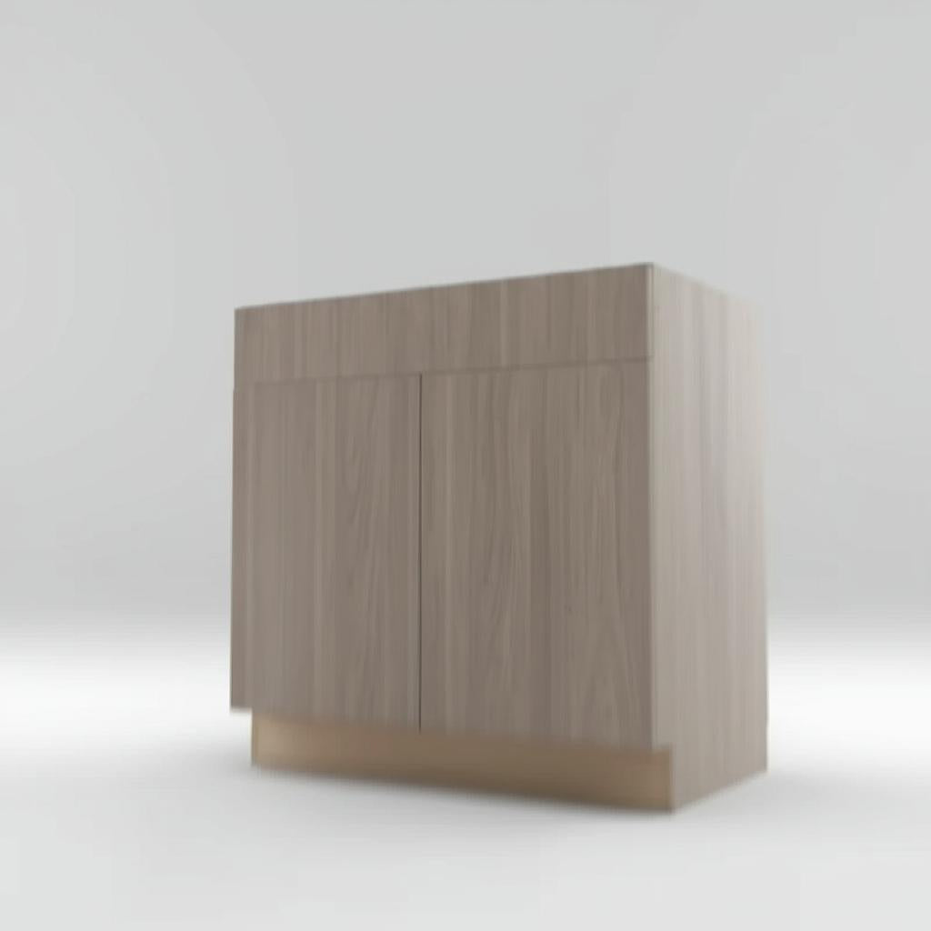 The Hampton Bay Designer Series Edgeley Base Kitchen Cabinet in Driftwood is a masterpiece of modern design and functionality. Its sleek slab doors and exotic wood-grain finish bring a touch of sophistication to any kitchen space. Pair it with minimalist decor to highlight its contemporary appeal, or use it as a foundation for a bold, eclectic design. This cabinet is not just a storage solution; it's a statement piece that elevates your kitchen to a realm of refined luxury.