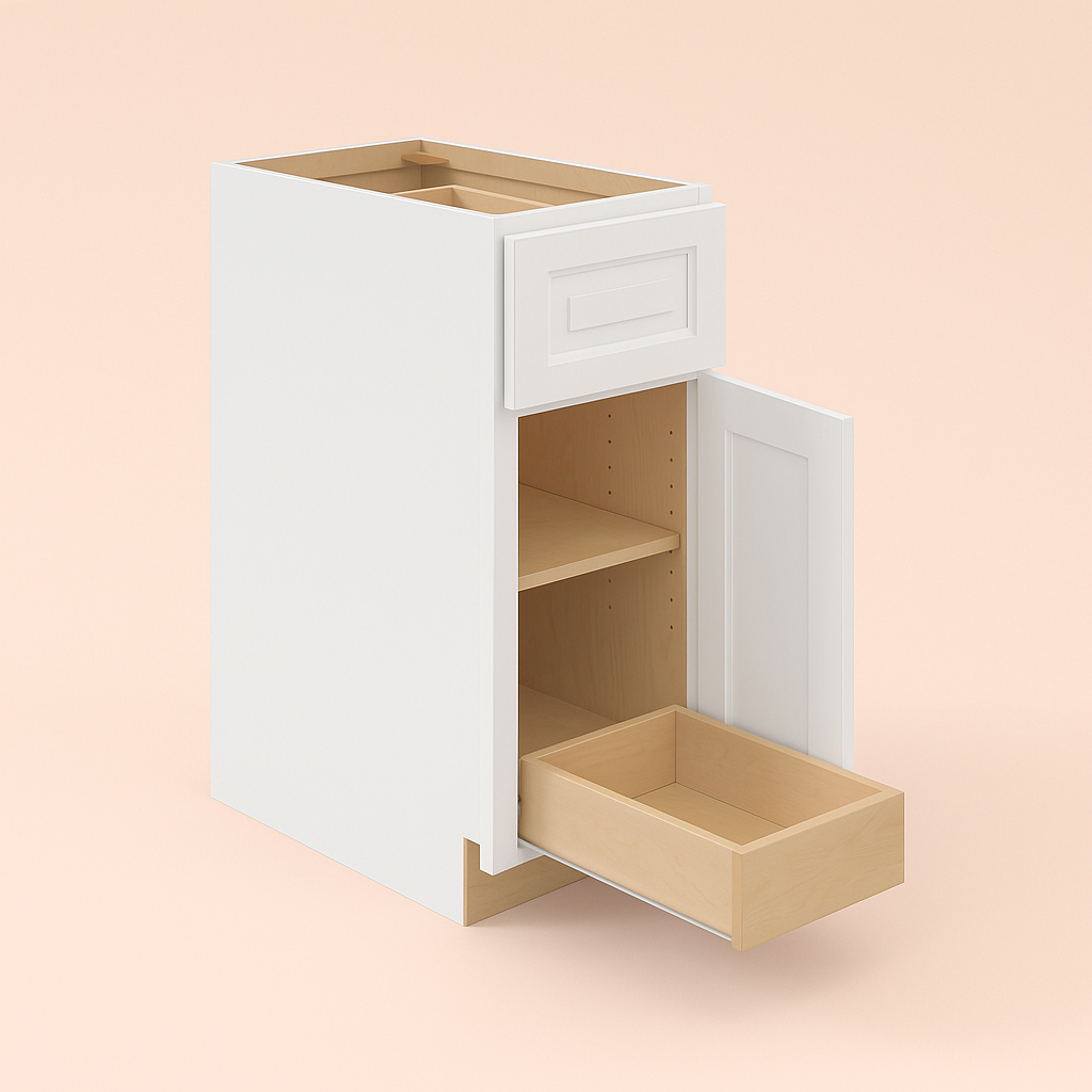 The Grayson Base Kitchen Cabinet in Pacific White is a masterpiece of design and functionality, seamlessly blending into any kitchen aesthetic. Its shaker-style doors and painted finish evoke a sense of modern sophistication, while the soft-close features and adjustable shelving ensure practical usability. Pair it with brushed nickel or gold hardware to create a luxurious ambiance that transforms your kitchen into a haven of style and comfort.