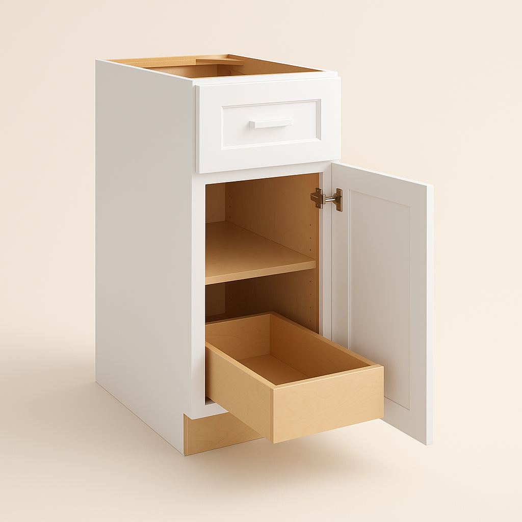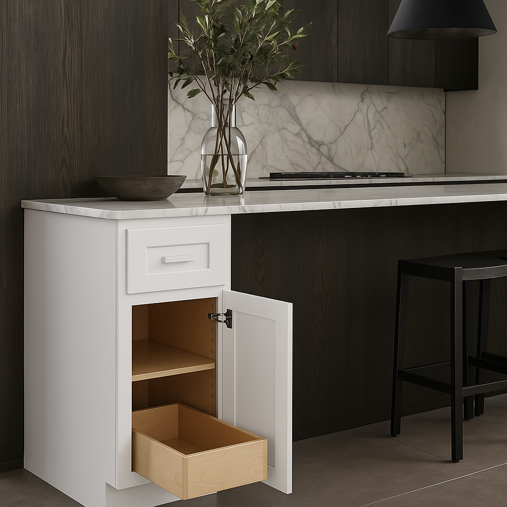 The Grayson Plywood Base Kitchen Cabinet combines premium plywood construction with a soft-close design and adjustable shelves, all in a serene Pacific White finish. Perfect for modern kitchens, it offers durability, style, and functionality.