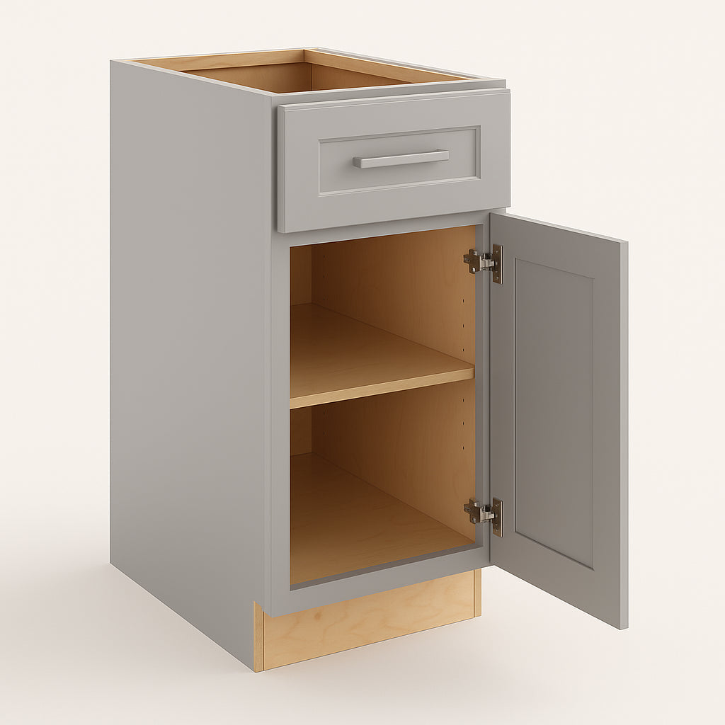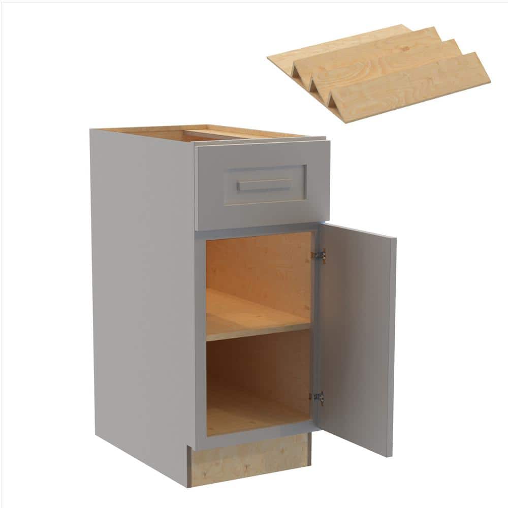 The Grayson Pearl Gray Base Kitchen Cabinet combines timeless shaker style with durable plywood construction and a soft-close mechanism for quiet, smooth operation. Its pearl gray finish adds a touch of elegance to any kitchen.