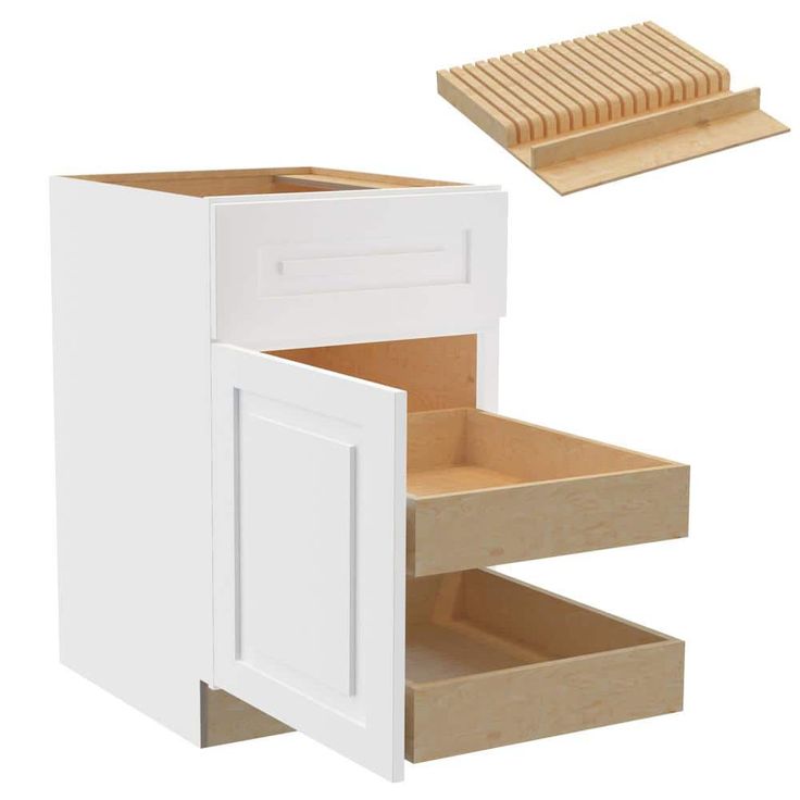 Elevate your kitchen's appeal with the sophisticated Grayson 21" Base Kitchen Cabinet from Home Decorators Collection. Featuring a stunning Pacific White finish, this assembled cabinet boasts all-plywood construction with soft-close doors and drawers, offering durability and sleek functionality. Perfect for modern and classic kitchens alike, its thoughtful design includes a convenient knife block, maximizing both style and organization.