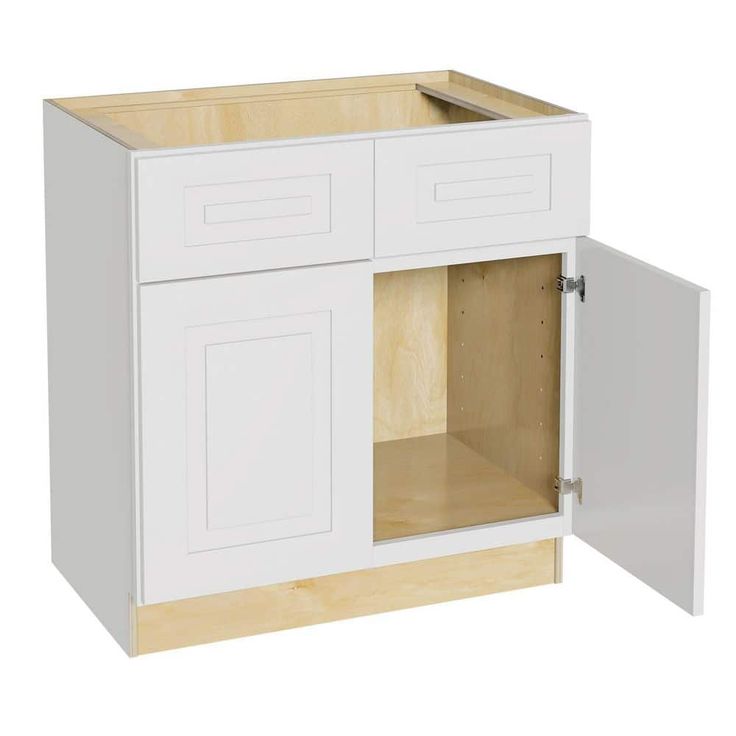 The Home Decorators Collection Grayson Sink Base Cabinet brings sophistication and practicality to any kitchen. Crafted from durable plywood with a painted Pacific White finish, this 33-inch cabinet features soft-close doors and a built-in arrangement for a seamless sink fit. Its transitional shaker style suits modern and coastal interiors alike, providing a timeless touch to your kitchen design.